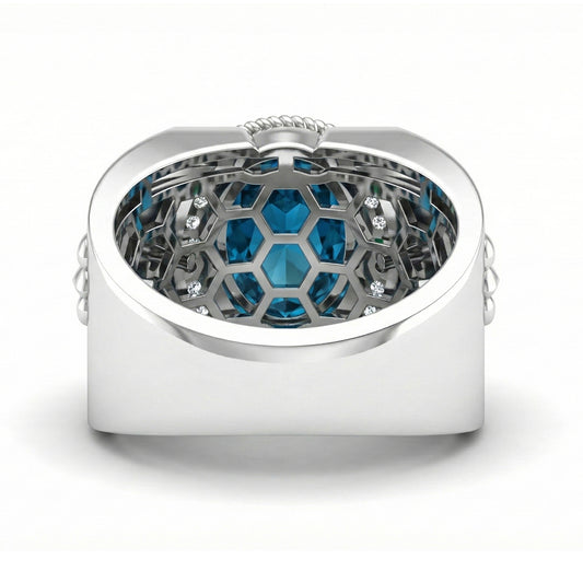 FDL02 Platinum Blue Zircon PT950 Men’s Ring