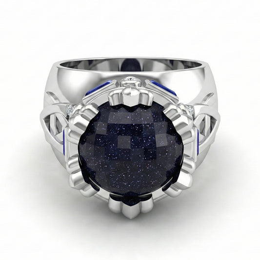 FDF06 Platinum Blue Sandstone Diamond PT950 Men’s Ring
