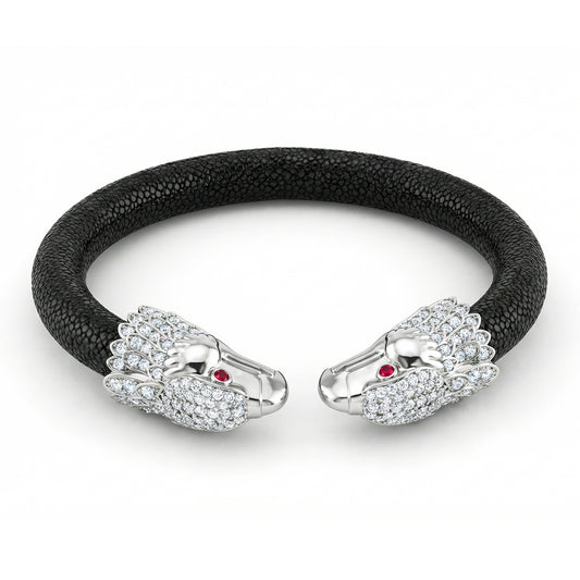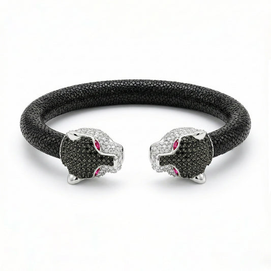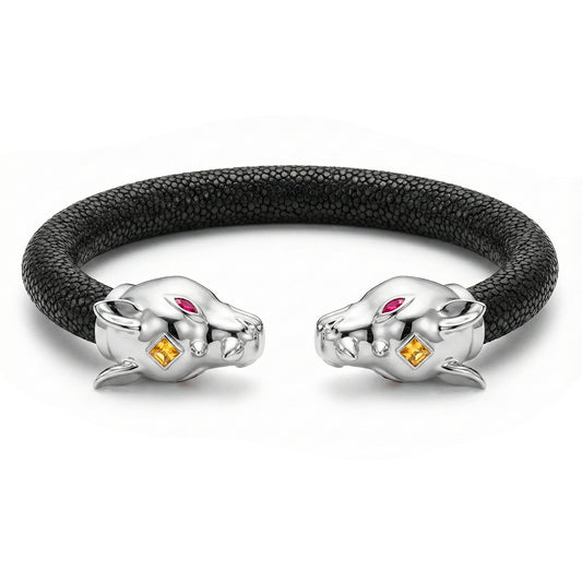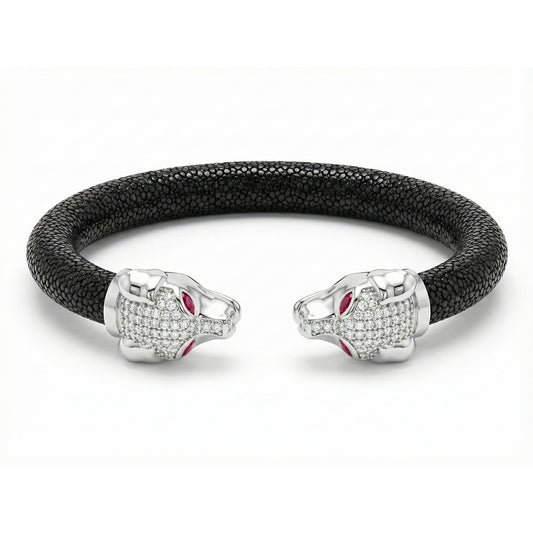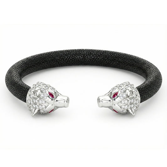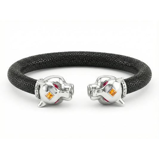 Jaguar 925 White Sapphire, Black Spinel & Ruby Stingray Bracelet