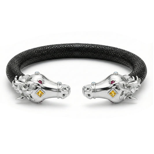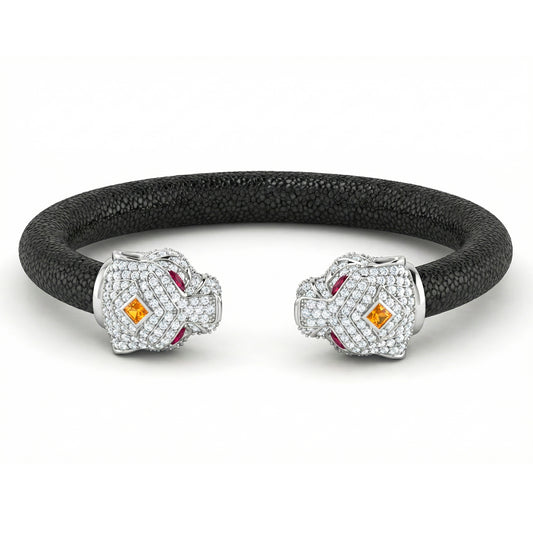 Tiger 925 White Sapphire Black Spinel & Ruby Stingray Bracelet