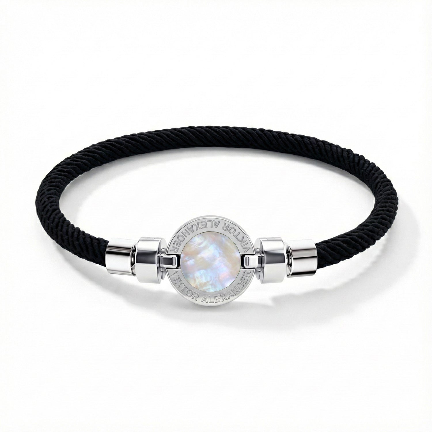 1889年製 マザーオブパール 925シルバー イタリア製ナイロンブレスレット