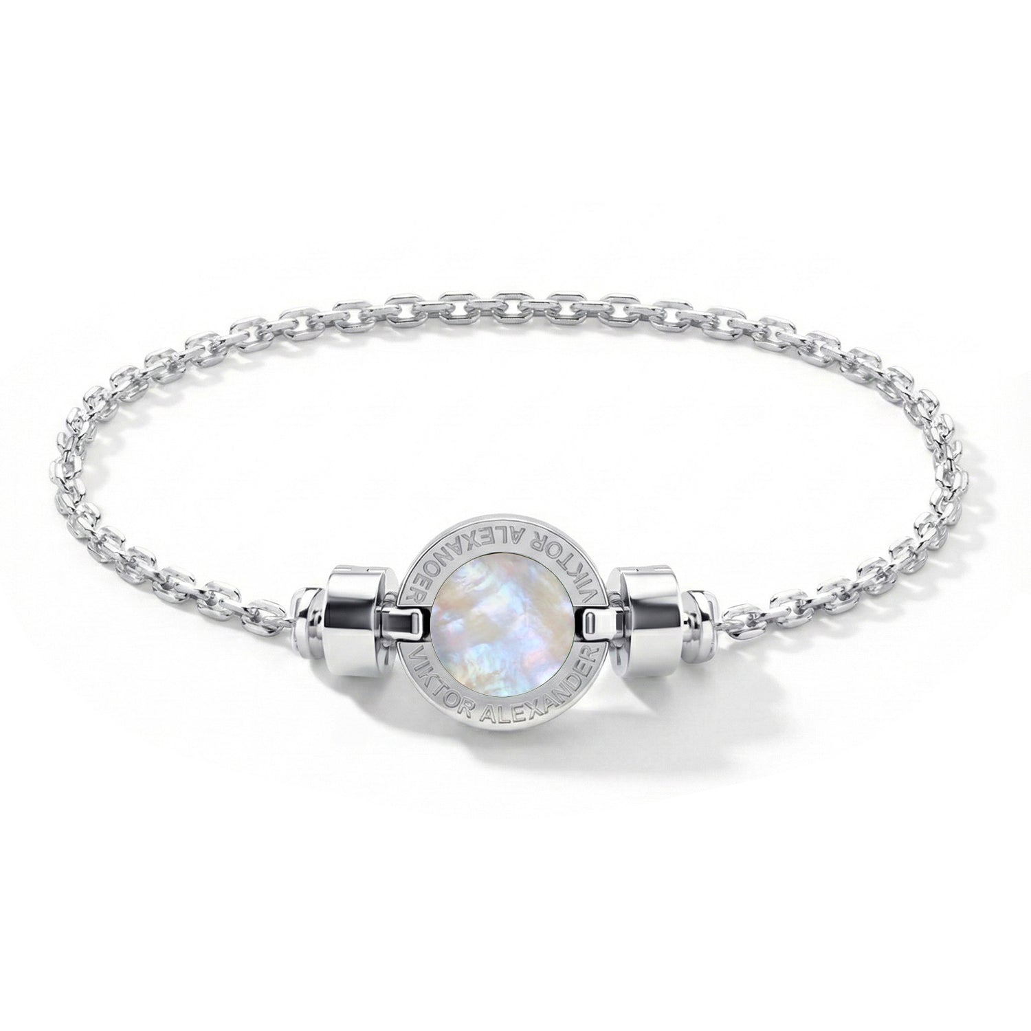 1889年製 マザーオブパール 925シルバー チェーンリンクブレスレット