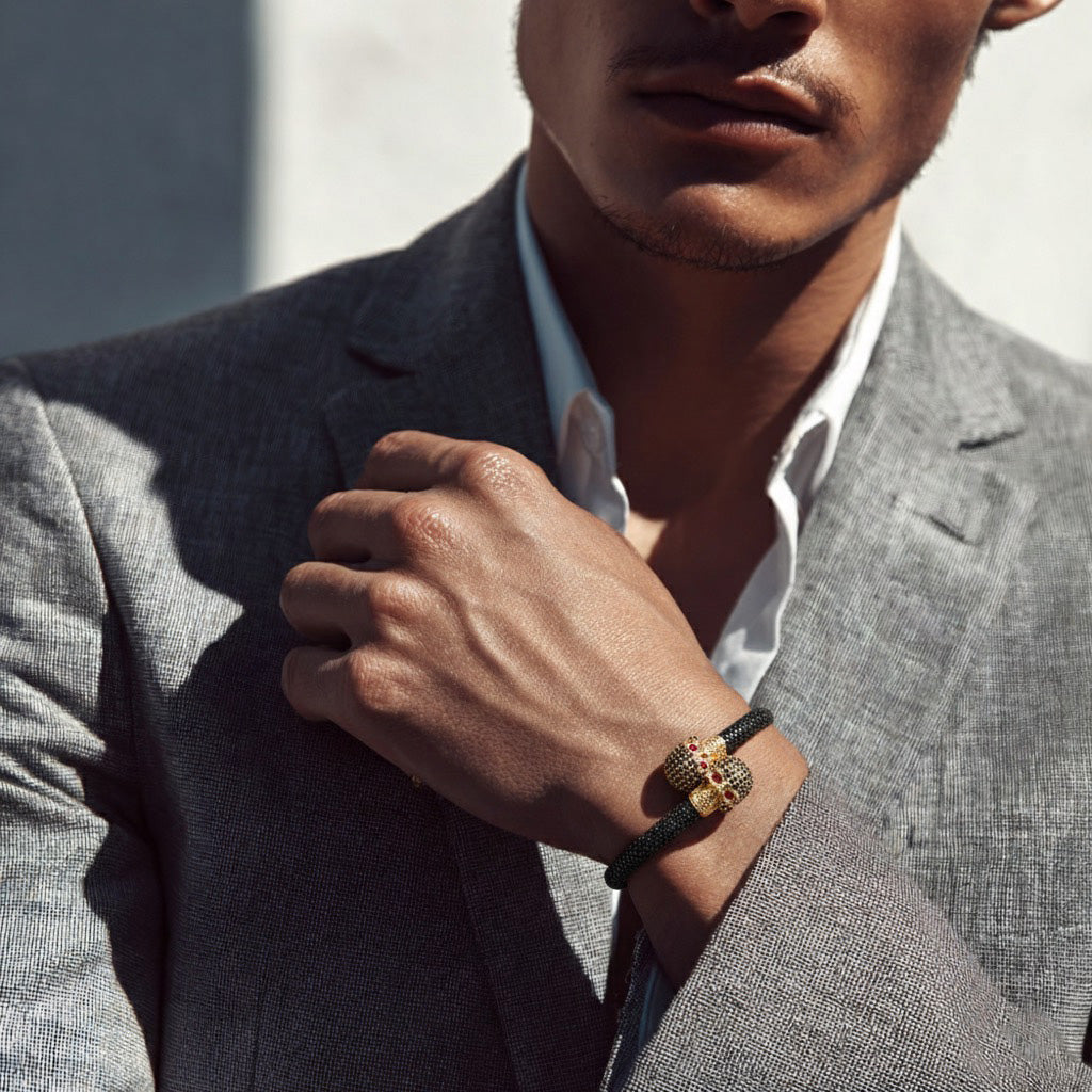 Each piece features a sculpted form, confident proportions, and meticulously handset gemstones that catch the light with purpose. The strap selection showcases only the world’s most exceptional exotic leathers—stingray, crocodile, python, and ostrich—chosen for their rarity, texture, and enduring luxury.Every bracelet is finished with high-micron gold plating, ensuring lasting brilliance and a perfect fit around the wrist. Veles is more than an accessory—it is a declaration of presence and personal style.