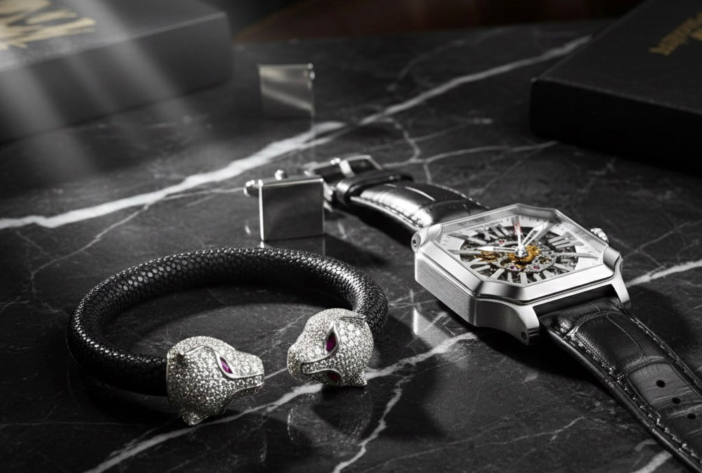 Each piece features a sculpted form, confident proportions, and meticulously handset gemstones that catch the light with purpose. The strap selection showcases only the world’s most exceptional exotic leathers—stingray, crocodile, python, and ostrich—chosen for their rarity, texture, and enduring luxury.Every bracelet is finished with high-micron gold plating, ensuring lasting brilliance and a perfect fit around the wrist. Veles is more than an accessory—it is a declaration of presence and personal style.