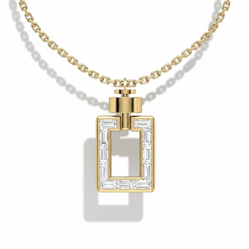 レガリアシリーズのペンダントは、モダンなナイロン素材、チェーンリンクネックレス、パールや様々なビーズを使ったネックレス、フルエタニティネックレスなど、様々なタイプのネックレスで簡単にカスタマイズできます。ネックラインに近づけて着用するか、ネックラインより下に着用するか、お好みに合わせてサイズをお選びいただけます。
