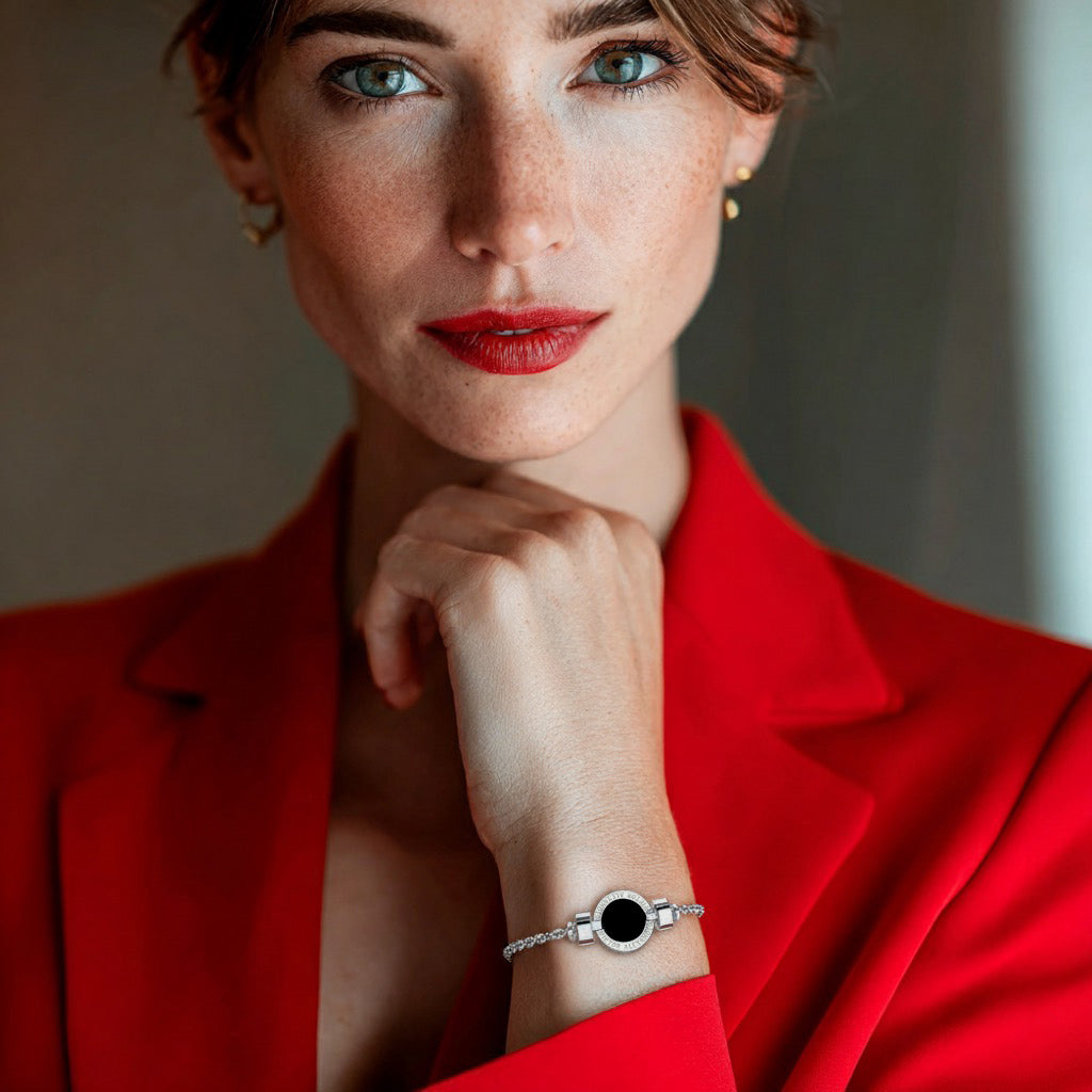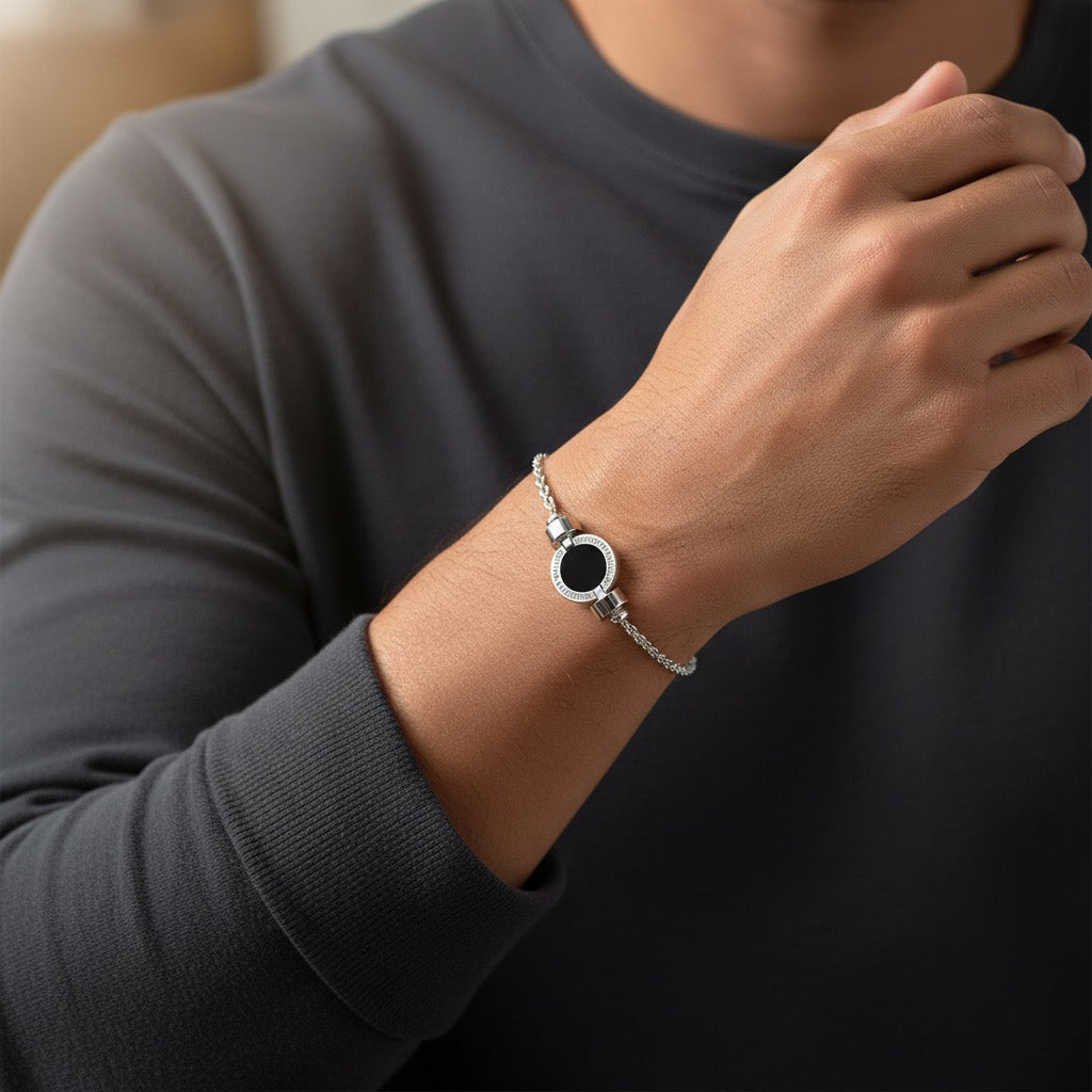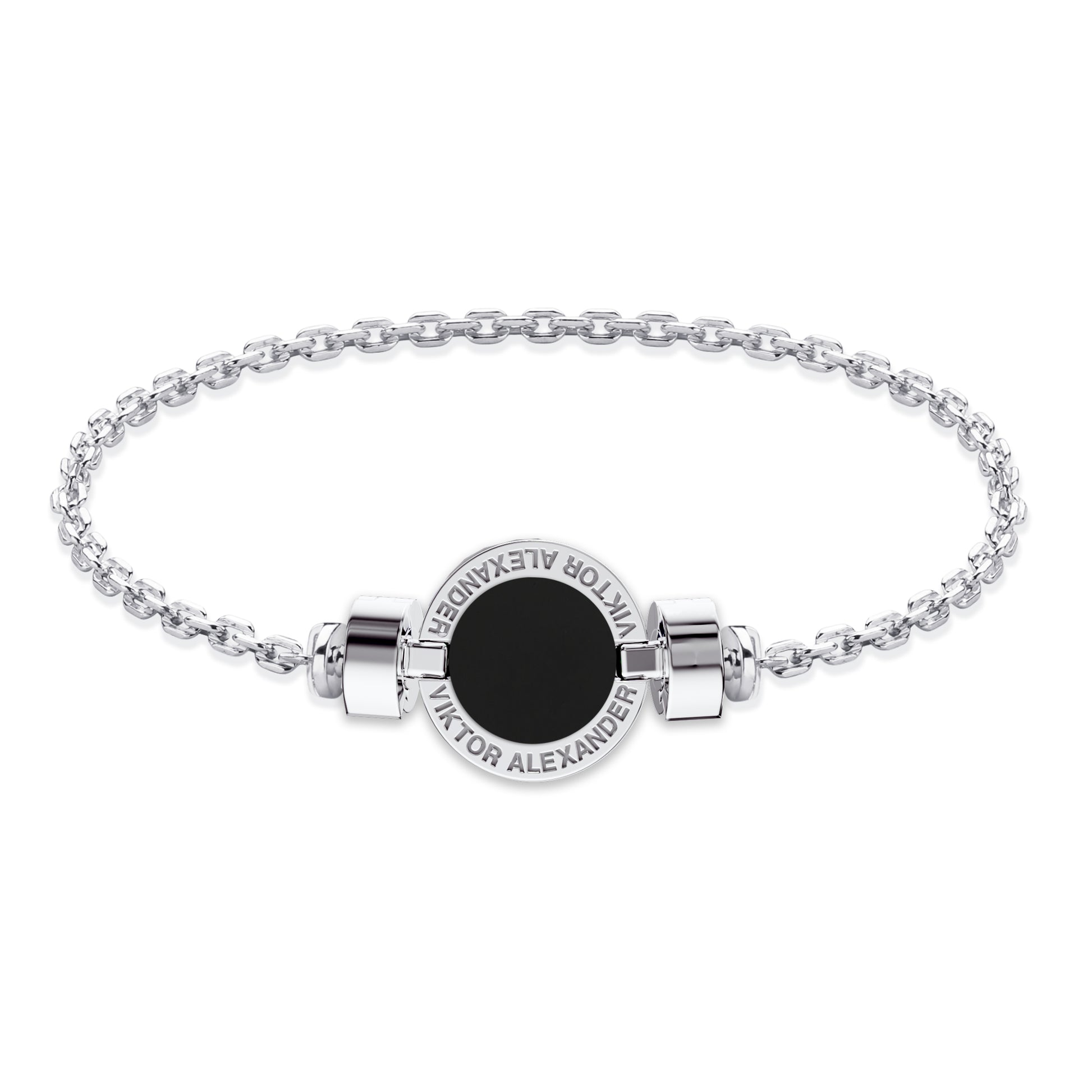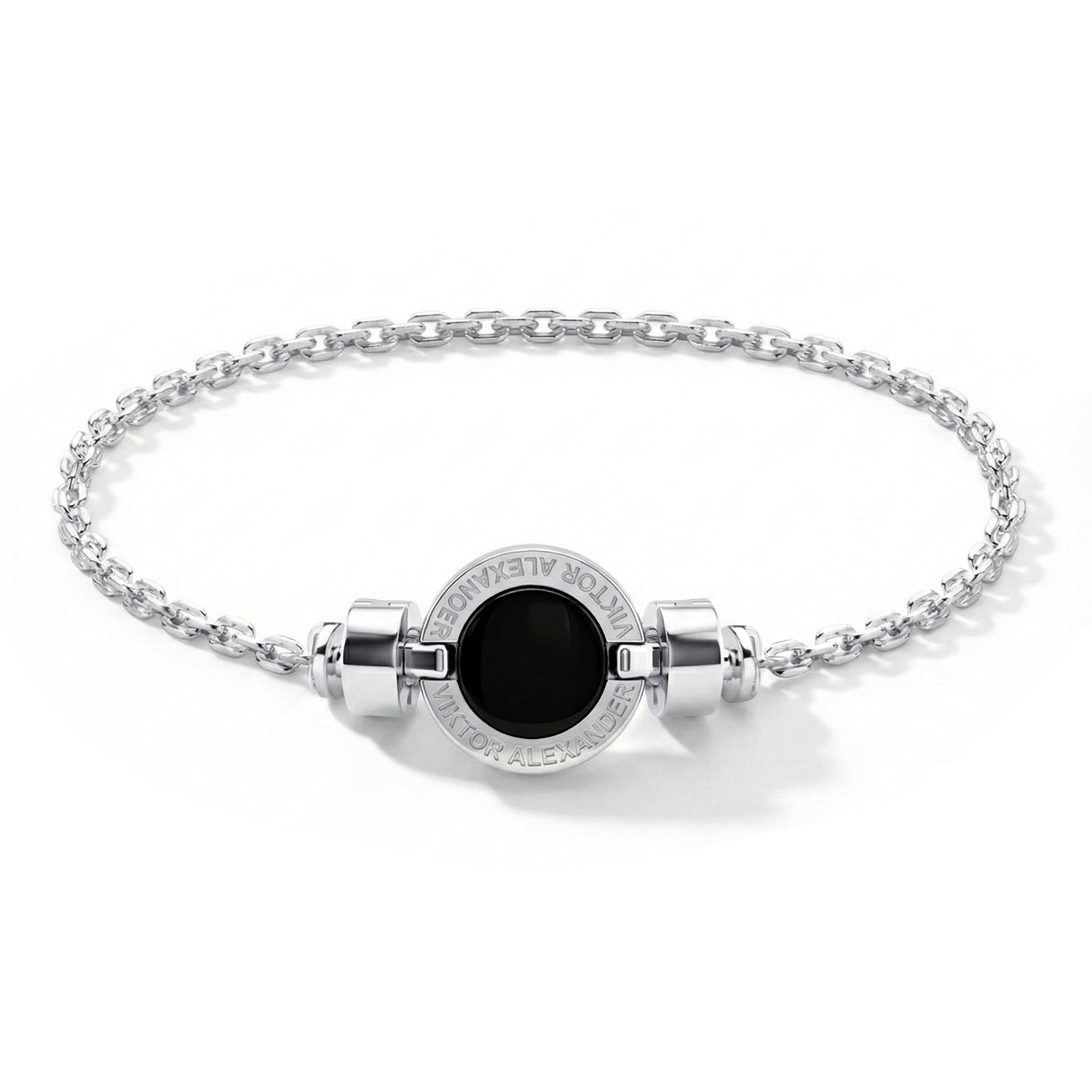 1889 Black Spinel 925 Silver Chain Link Bracelet