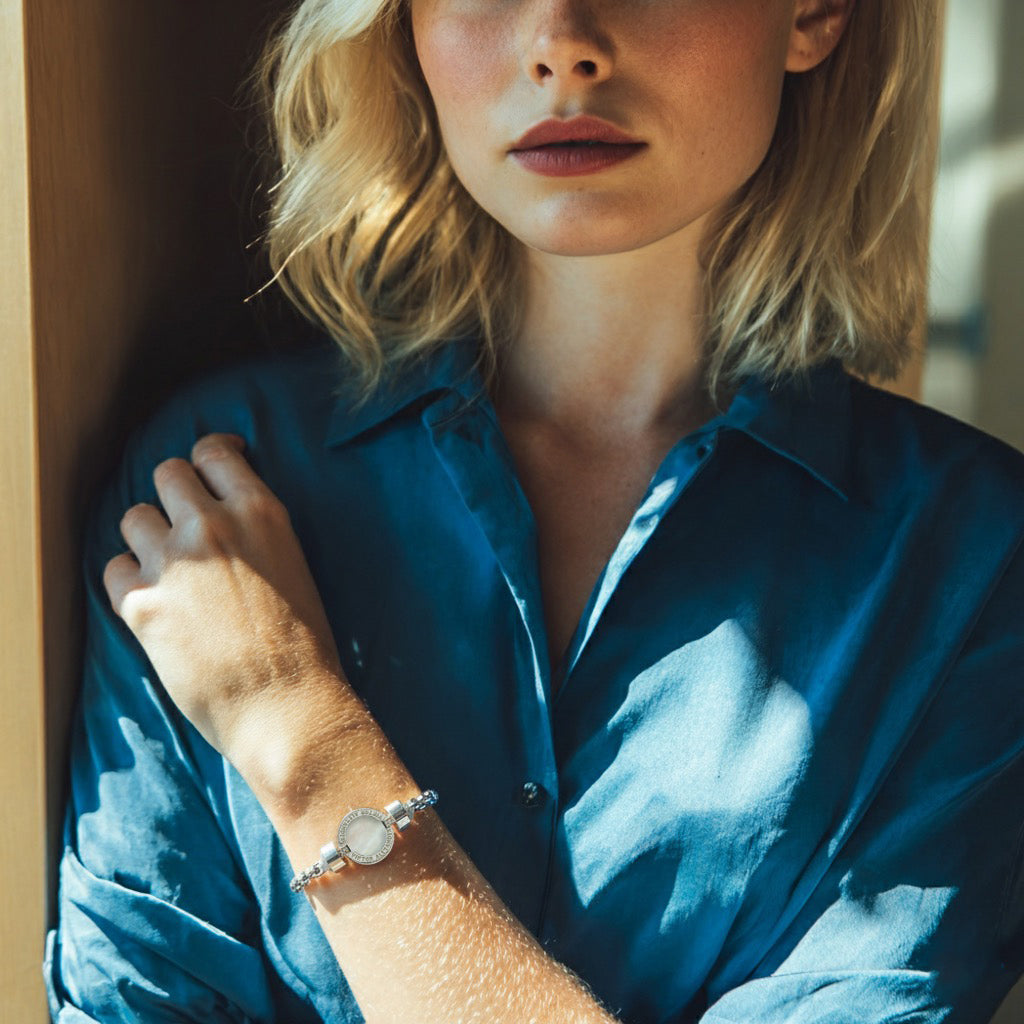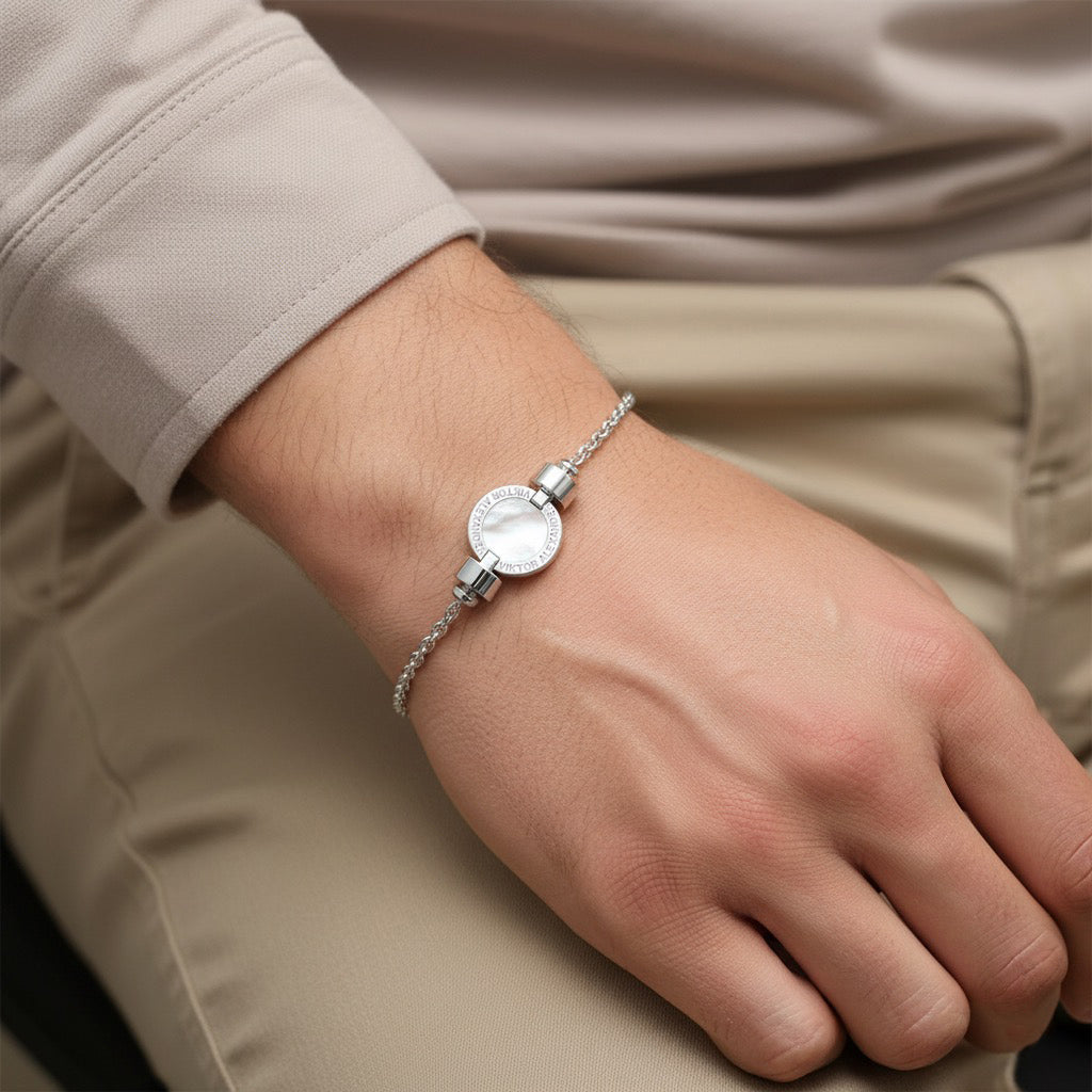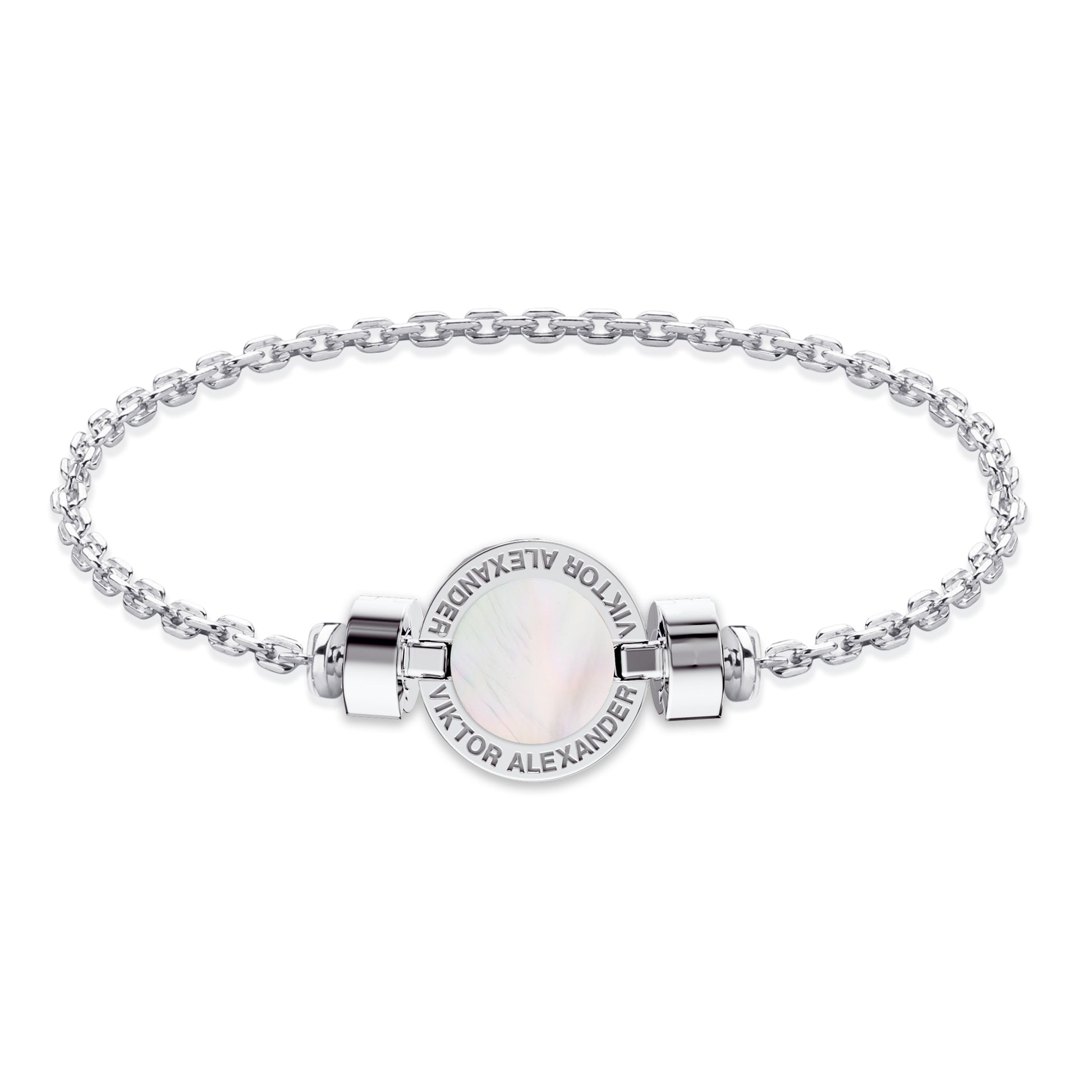 1889 Mother of Pearl 925 Silver Chain Link Bracelet