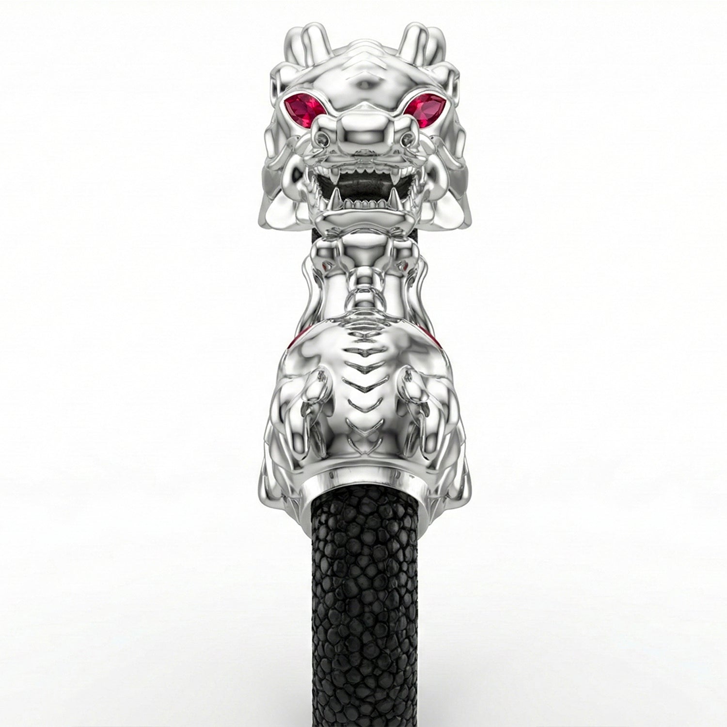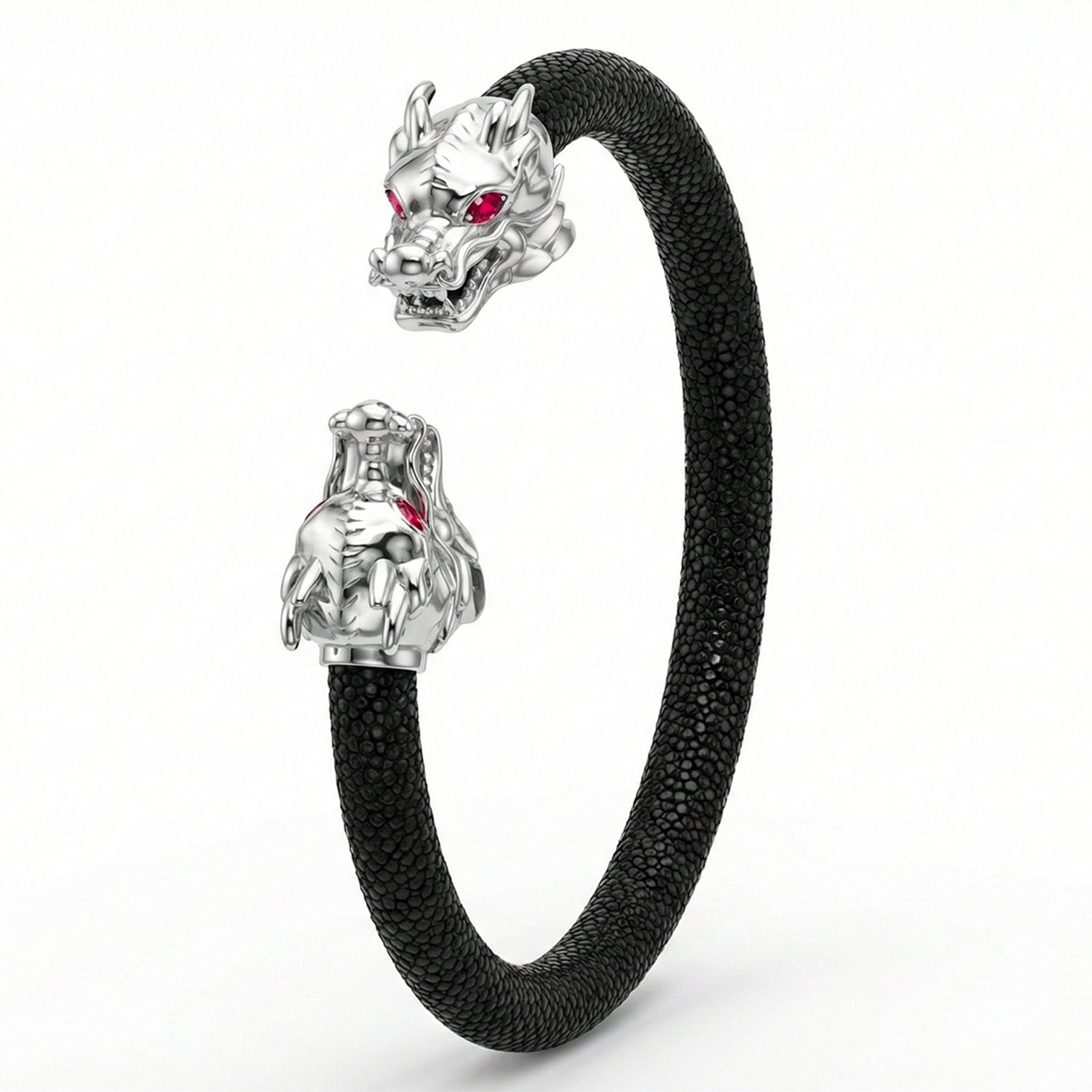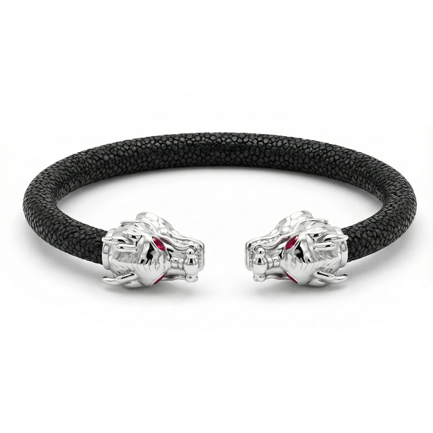 Dragon Motif Ruby Eyes in Crocodile Bracelet
