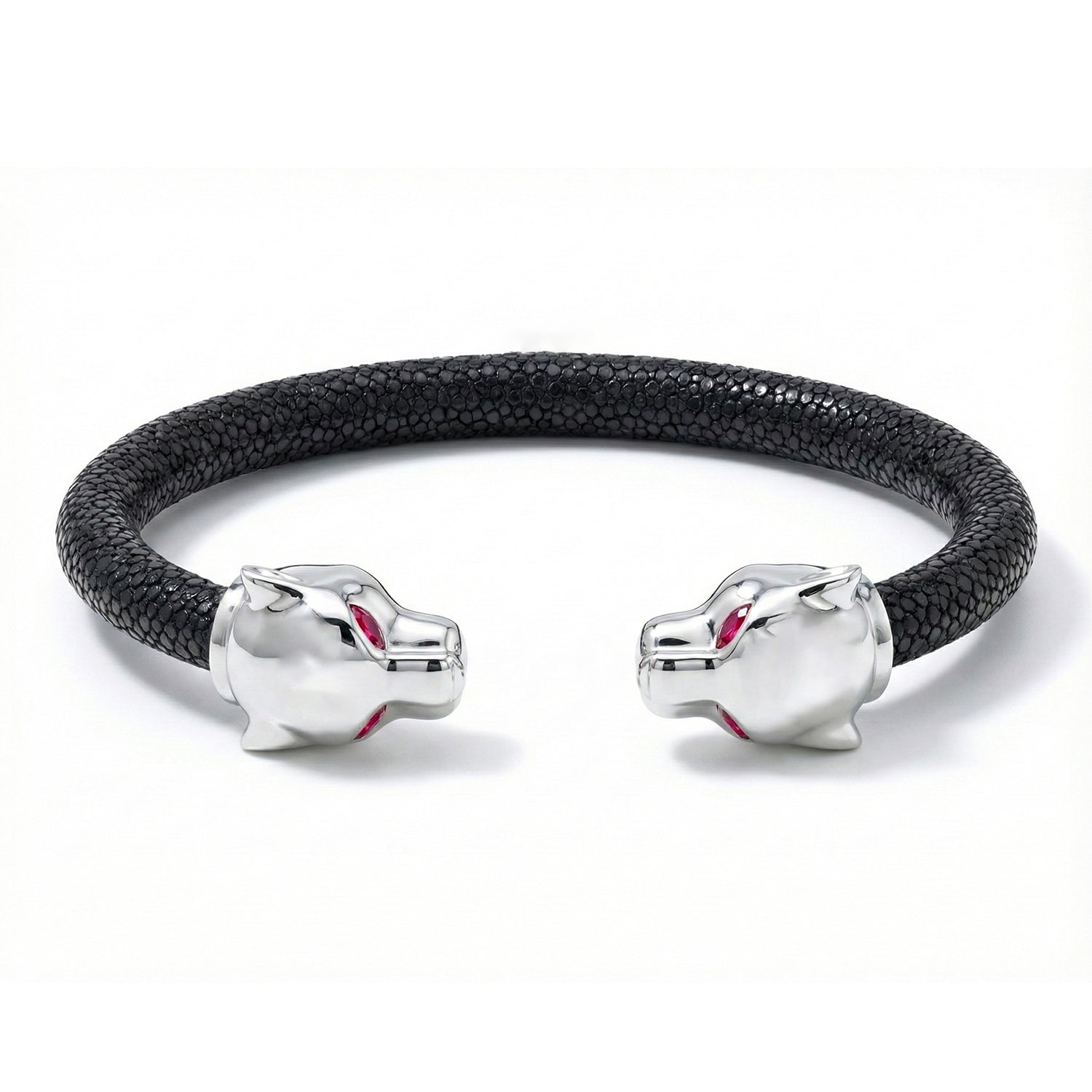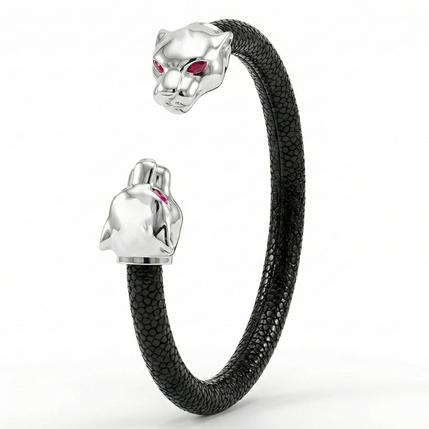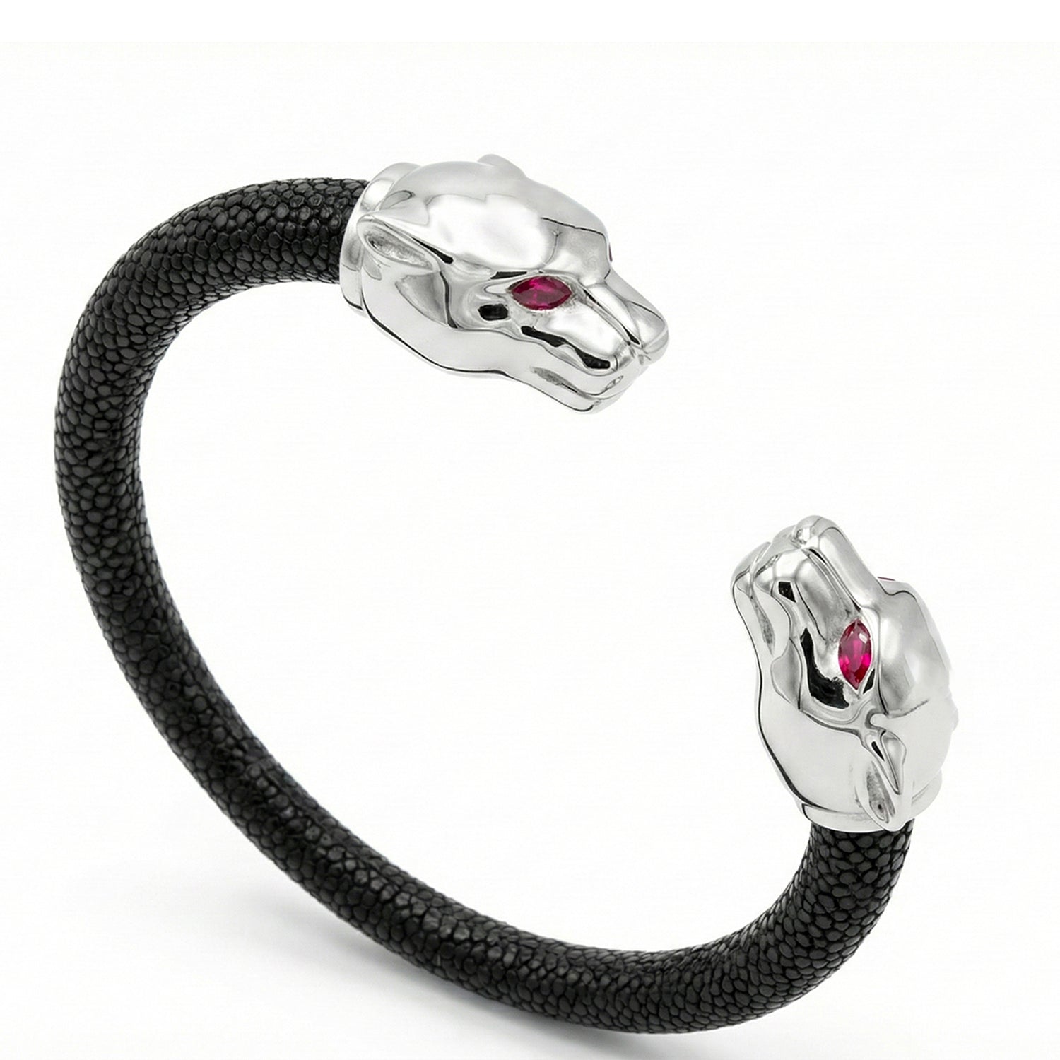 Bold and unapologetically expressive, the Eternity X Collection showcases a curated series of sculptural animal motifs, inspired by the intricate animal-head carvings that once adorned the ceremonial daggers of royals and noblemen in the early 1800s. Translated into the crowns of our signature bracelets, each motif embodies a distinct elemental and spiritual energy—serving as both a personal talisman and a symbol of power. The collection reflects the design philosophy at the heart of Viktor Alexander, uniting the brand’s three pillars: precious leather, noble metals, and exquisitely set gemstones.