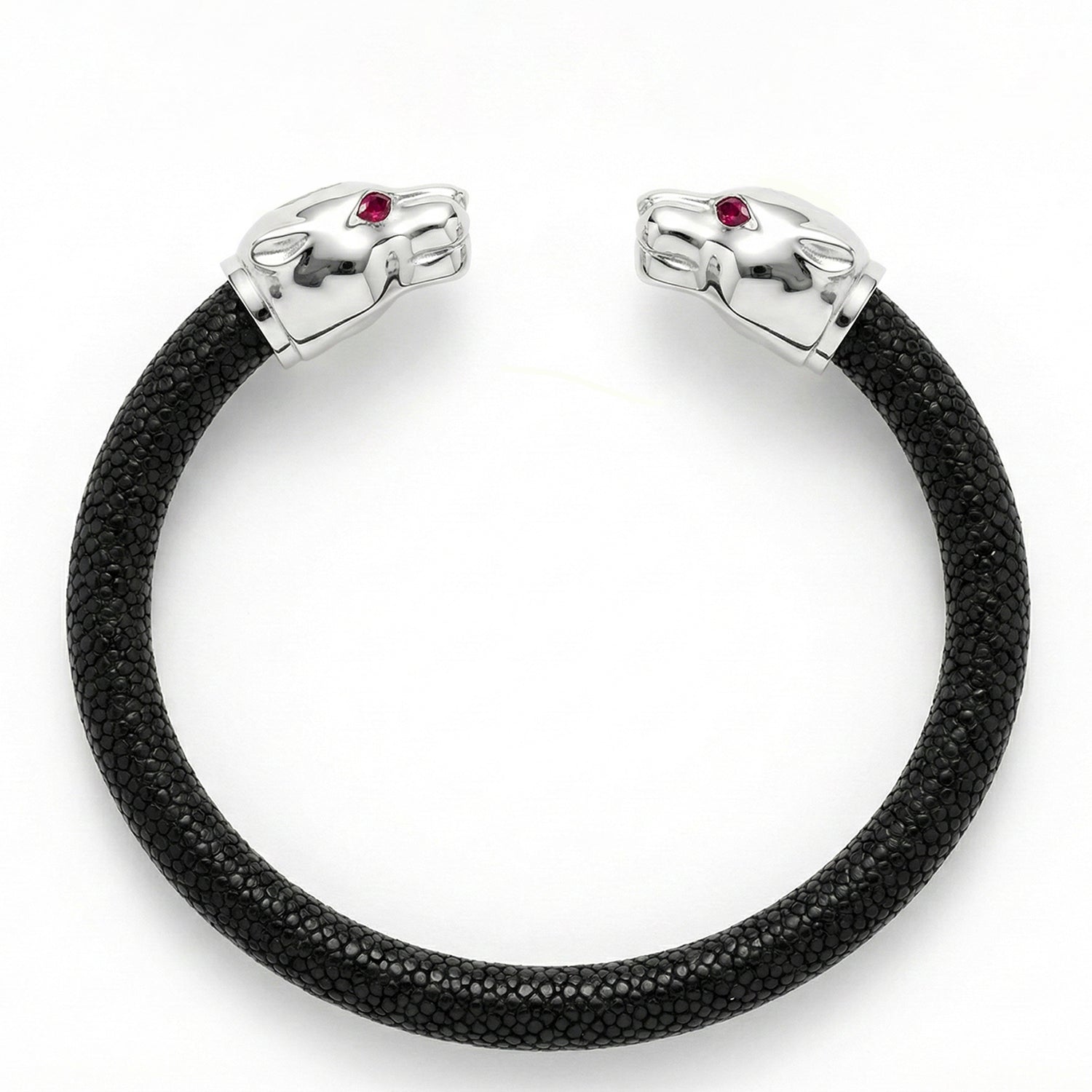 Jaguar Motif Ruby Eyes in Crocodile Bracelet