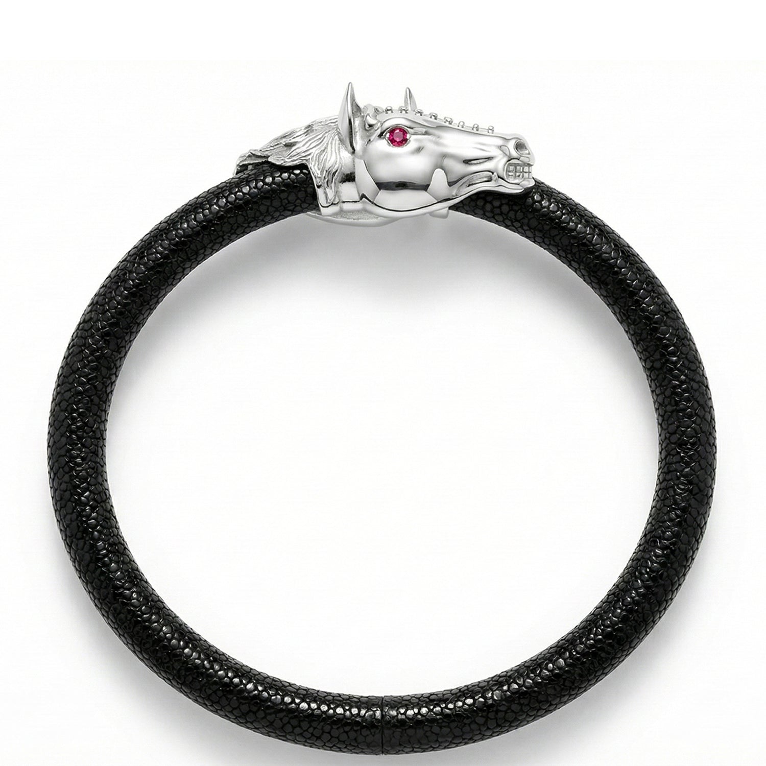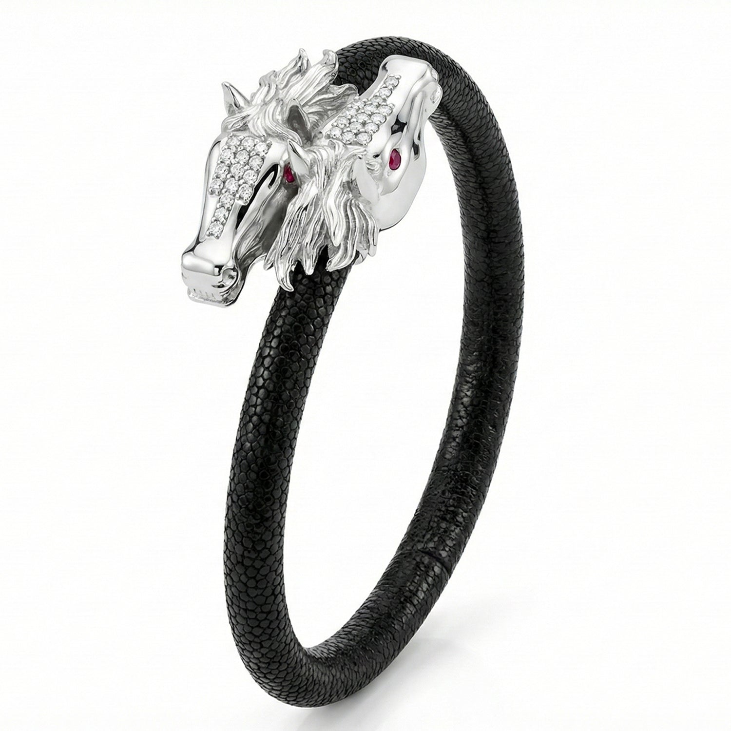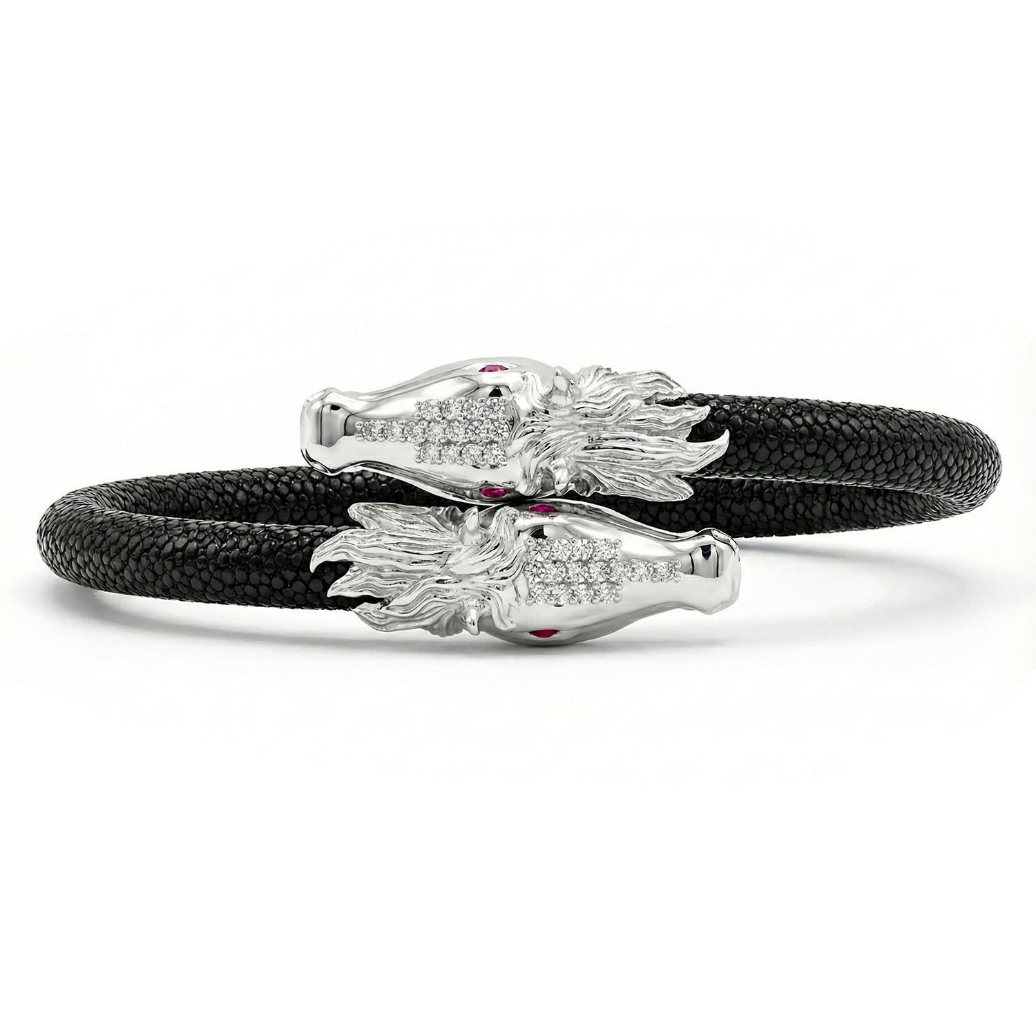Bold and unapologetically expressive, the Eternity X Collection showcases a curated series of sculptural animal motifs, inspired by the intricate animal-head carvings that once adorned the ceremonial daggers of royals and noblemen in the early 1800s. Translated into the crowns of our signature bracelets, each motif embodies a distinct elemental and spiritual energy—serving as both a personal talisman and a symbol of power. The collection reflects the design philosophy at the heart of Viktor Alexander, uniting the brand’s three pillars: precious leather, noble metals, and exquisitely set gemstones.