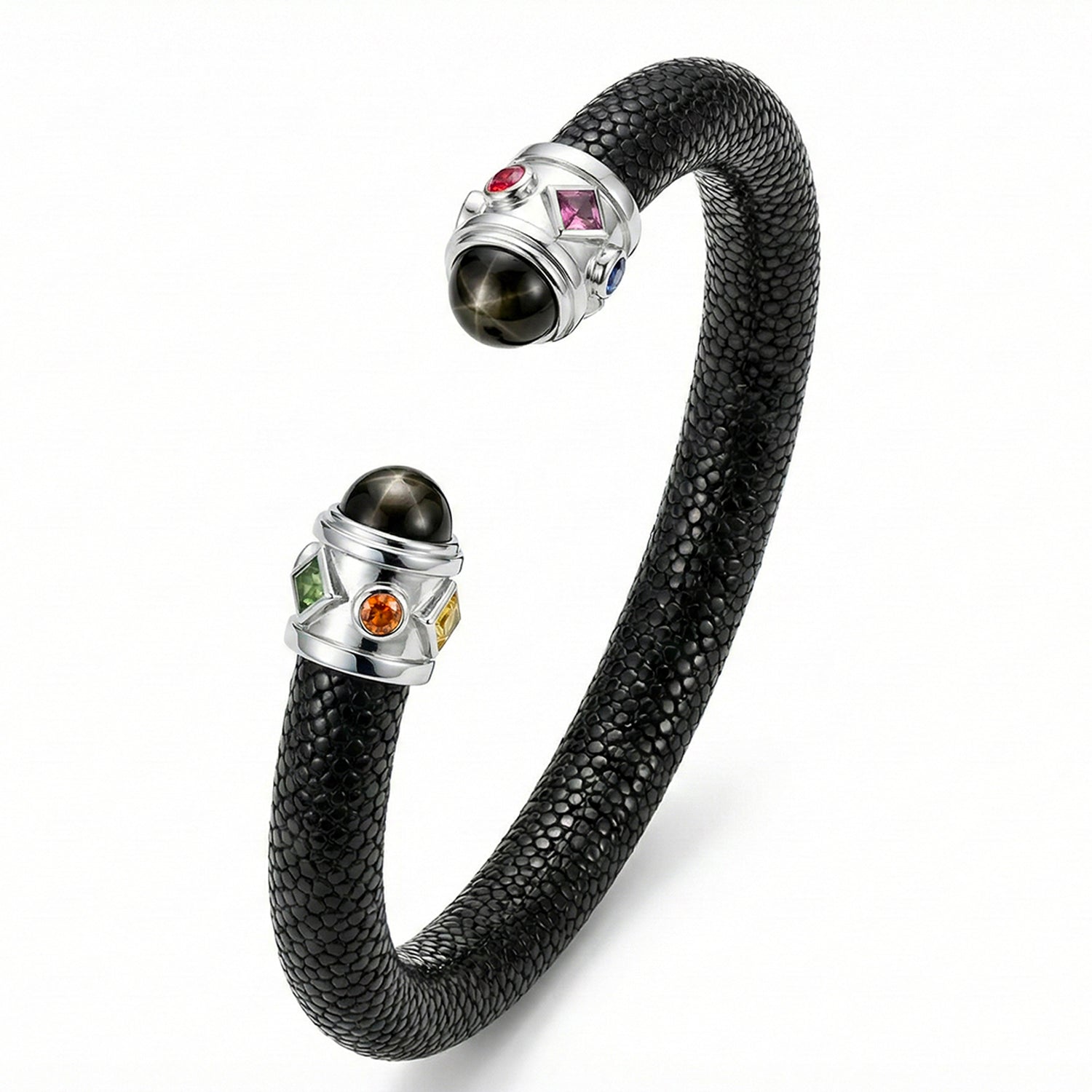 Alix 925 Black Star Diopside & Fancy Sapphire Stingray Bangle