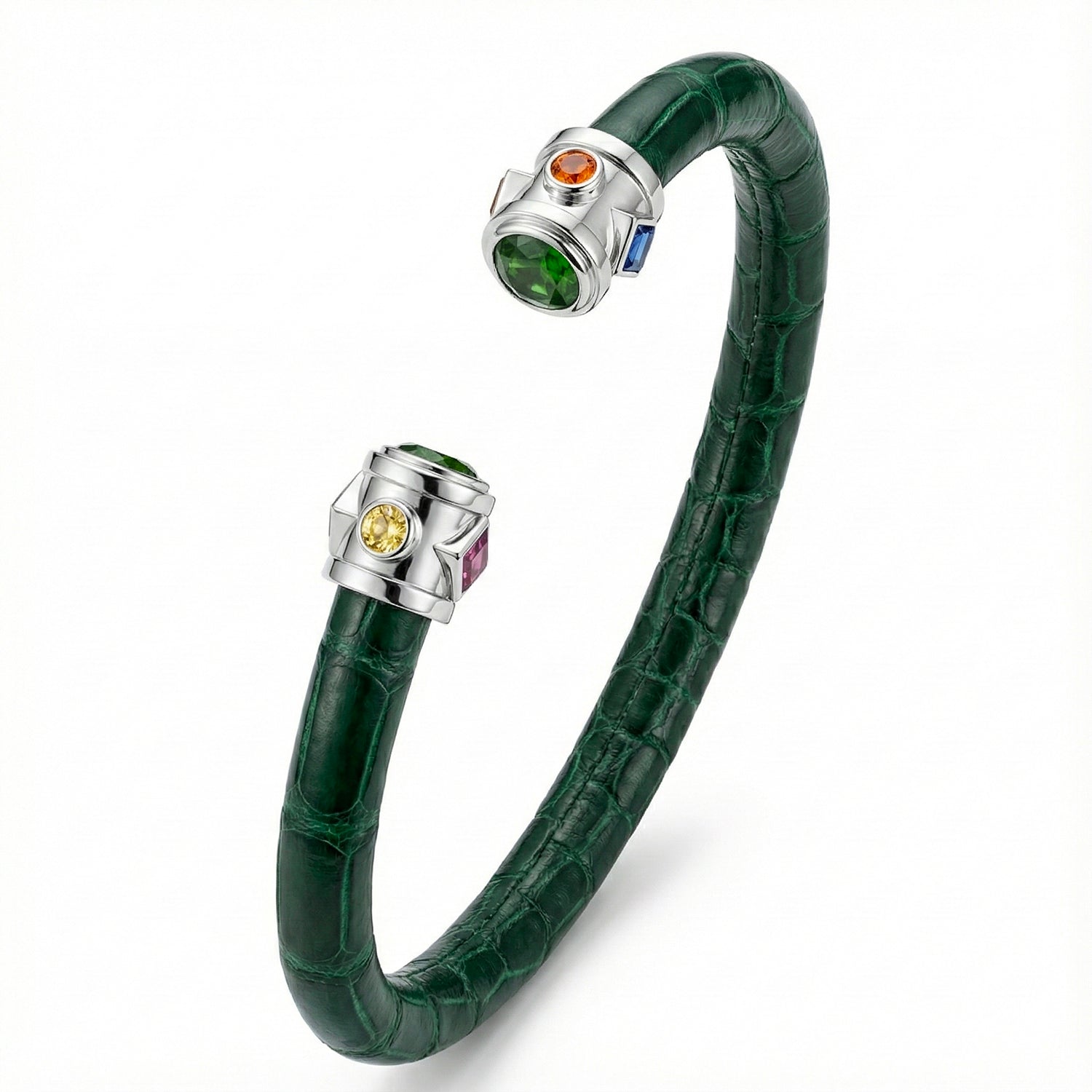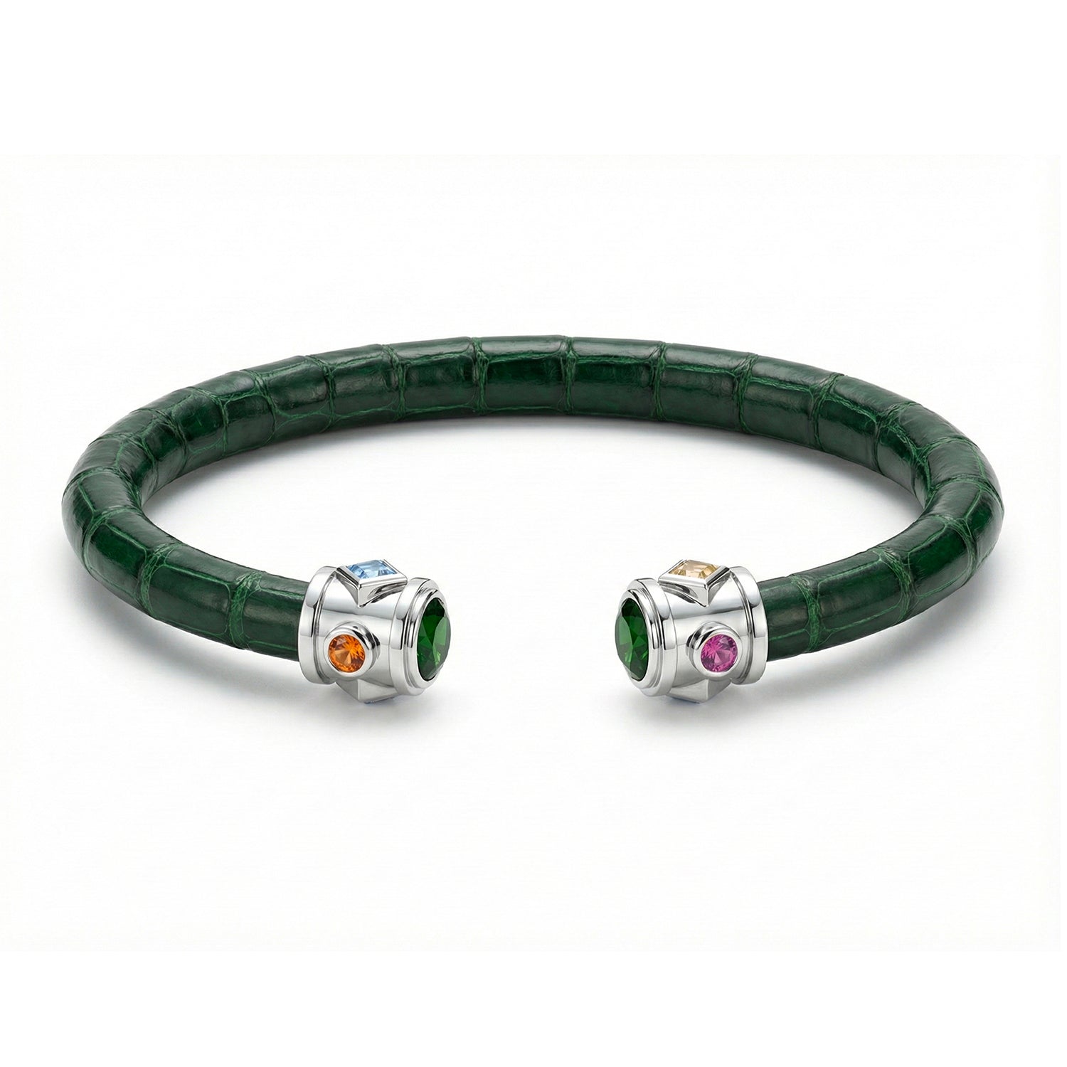 The Eternity Bracelet is an enduring icon of Viktor Alexander, distinguished by its alternating princess-cut and round-cut gemstones, elegantly encircling a signature circular crown set with a brilliant 6mm centre stone. Inspired by the regal grandeur of the Royal Sceptre, this modern interpretation pays homage to sovereign elegance. A true embodiment of the Viktor Alexander philosophy, it unites precious metals, precious gemstones, and precious exotic leathers into a timeless expression of prestige and craftsmanship.