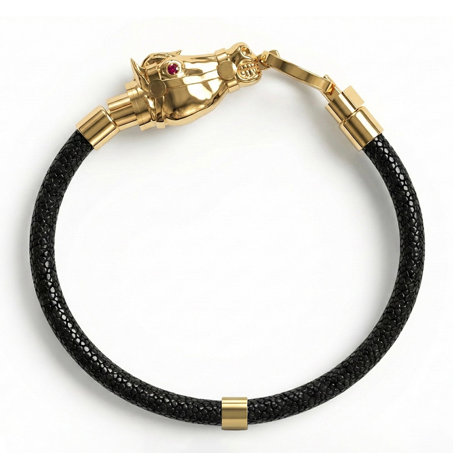 18k Horse Ruby Eyes with Galuchat Stingray bracelet