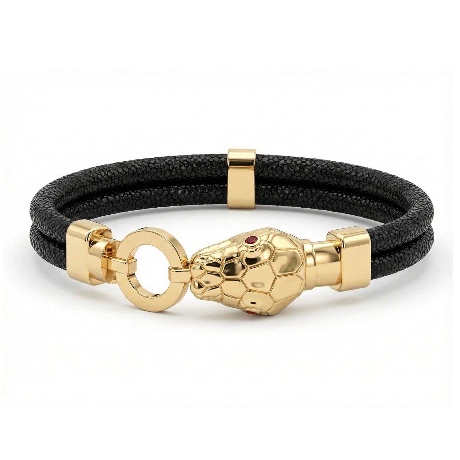 18 carat Tiger Ruby Eyes Bracelet with Stingray Galuchat Bracelet