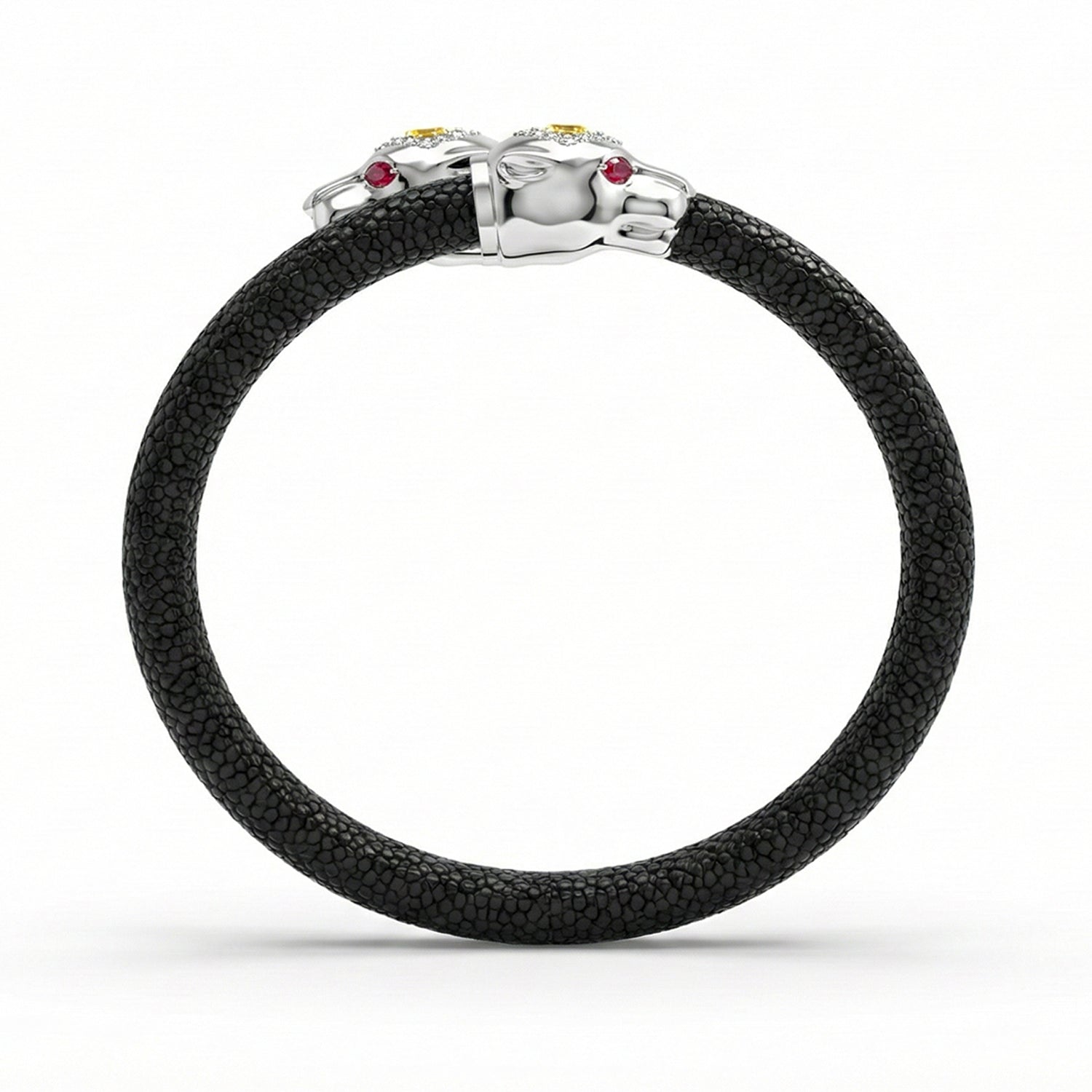Bold and unapologetically expressive, the Eternity X Collection showcases a curated series of sculptural animal motifs, inspired by the intricate animal-head carvings that once adorned the ceremonial daggers of royals and noblemen in the early 1800s. Translated into the crowns of our signature bracelets, each motif embodies a distinct elemental and spiritual energy—serving as both a personal talisman and a symbol of power. The collection reflects the design philosophy at the heart of Viktor Alexander, uniting the brand’s three pillars: precious leather, noble metals, and exquisitely set gemstones.