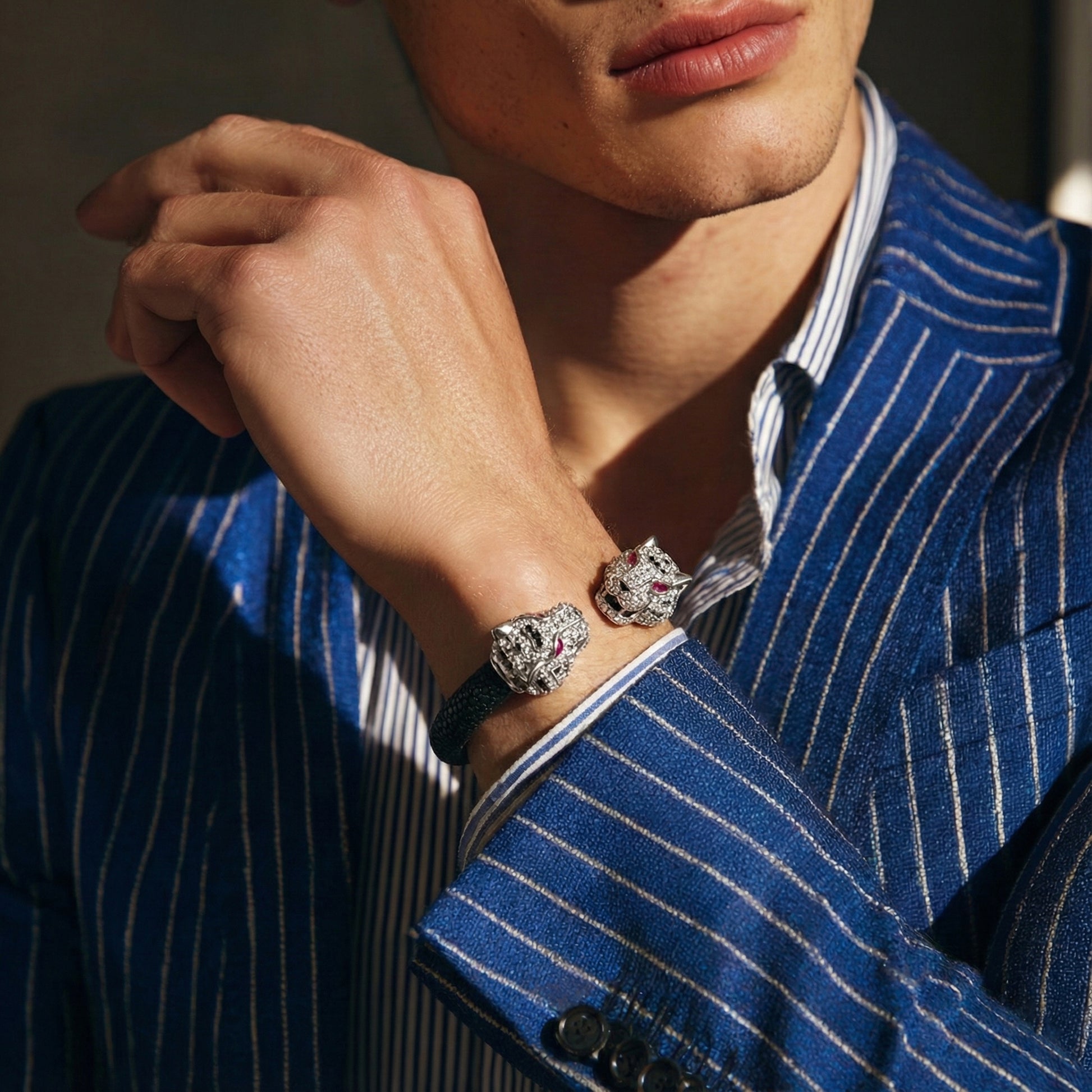 The Veles Series represents the purest expression of Viktor Alexander’s founding philosophy, uniting precious gemstones, precious metals, and exotic leathers into a singular statement of craftsmanship and character. Bold in silhouette and instantly recognisable, Veles is embraced by fashion leaders, modern royalty, and music icons who value distinction and individuality.