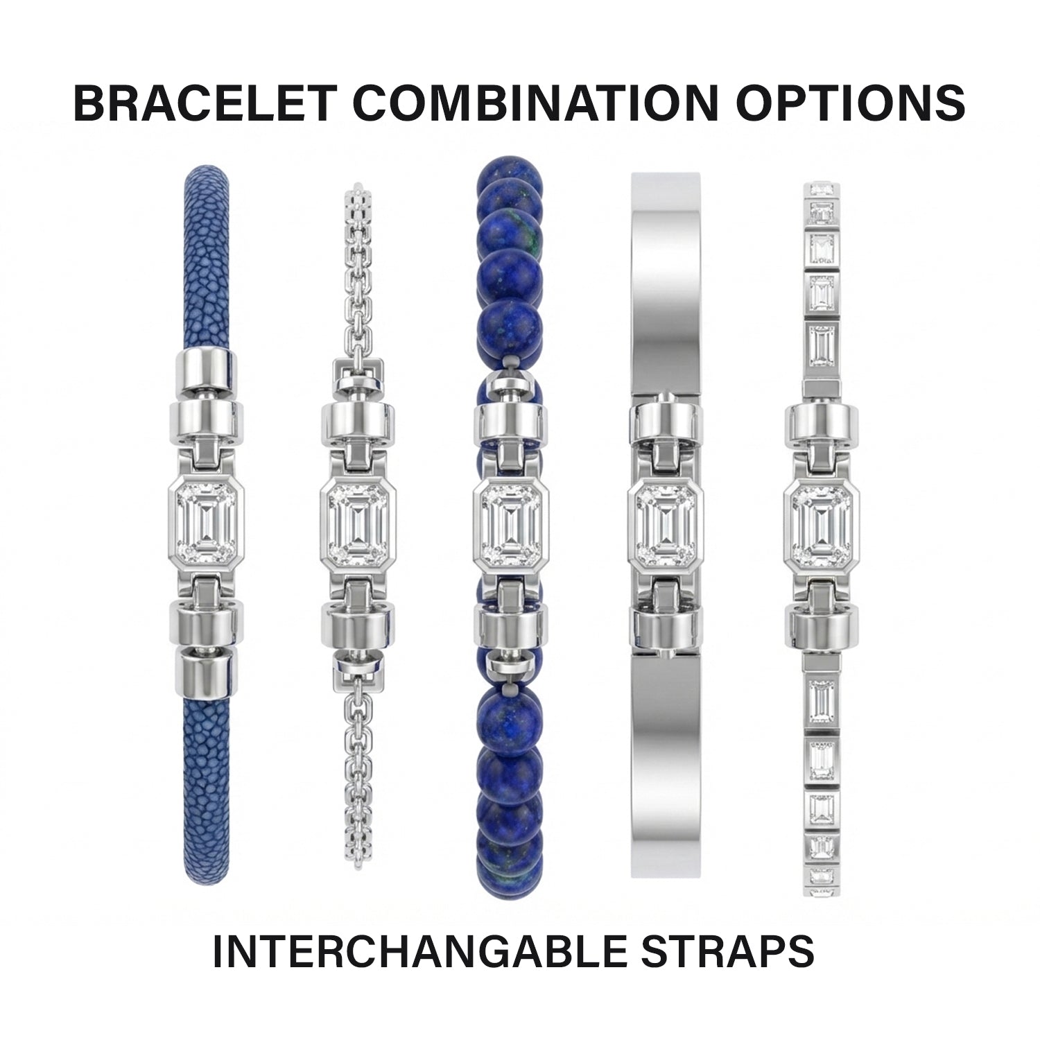 The essence of the Jubilee experience lies in its versatility: an investment-grade gemstone locket that can be paired with our recommended Jubilee Eternity Bracelets, or personalised further with interchangeable alternatives such as chain-link bracelets, gemstone bead strands, braided calf leather, or understated nylon for a more casual outing.