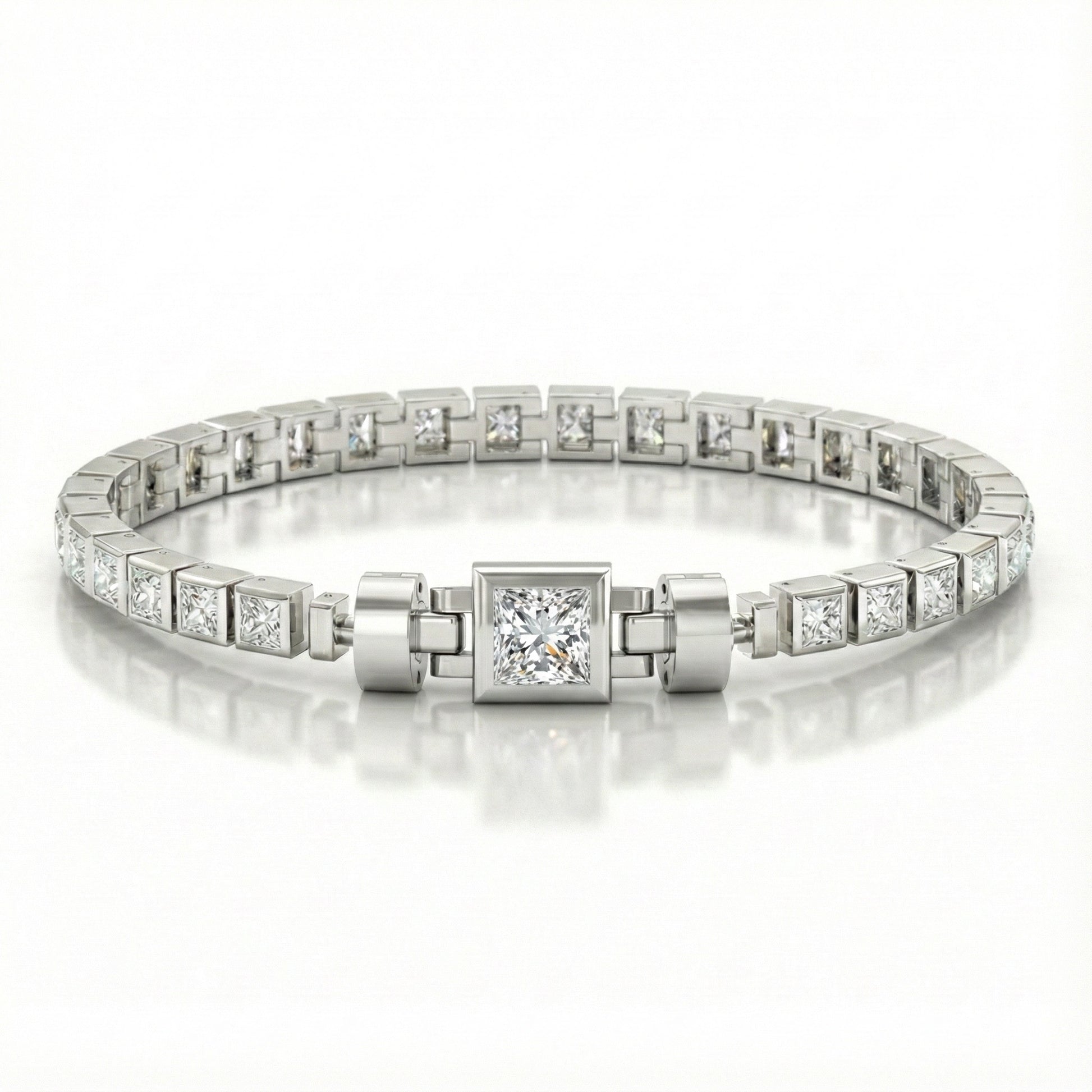 Jubilee 1 carat Princess Cut Diamond with 3mm Eternity Diamond Bracelet in 18 carat White Gold