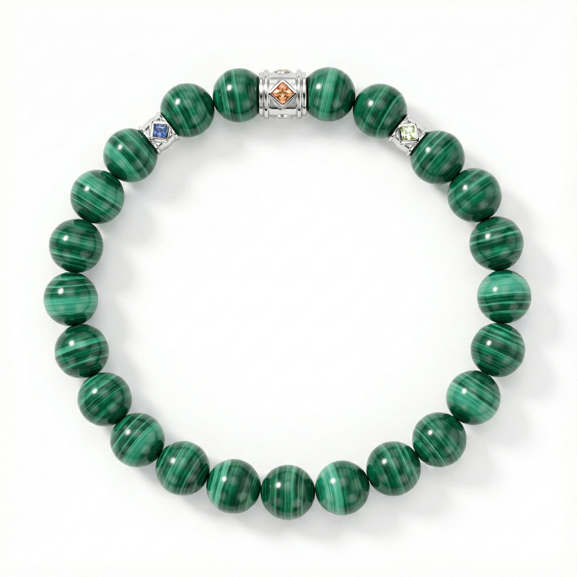Malachite is a vibrant green copper-based mineral associated with powerful transformative energy, often believed to absorb negative influences, encourage emotional healing, and promote growth and positive change. It is mined primarily in the Democratic Republic of the Congo, with notable deposits also found in Zambia, Russia, Australia, and Namibia. Highly desirable for its bold banded patterns and rich color, malachite has been treasured since ancient times for jewelry and ornamental carvings, valued both for its striking appearance and its reputation as a stone of protection and renewal