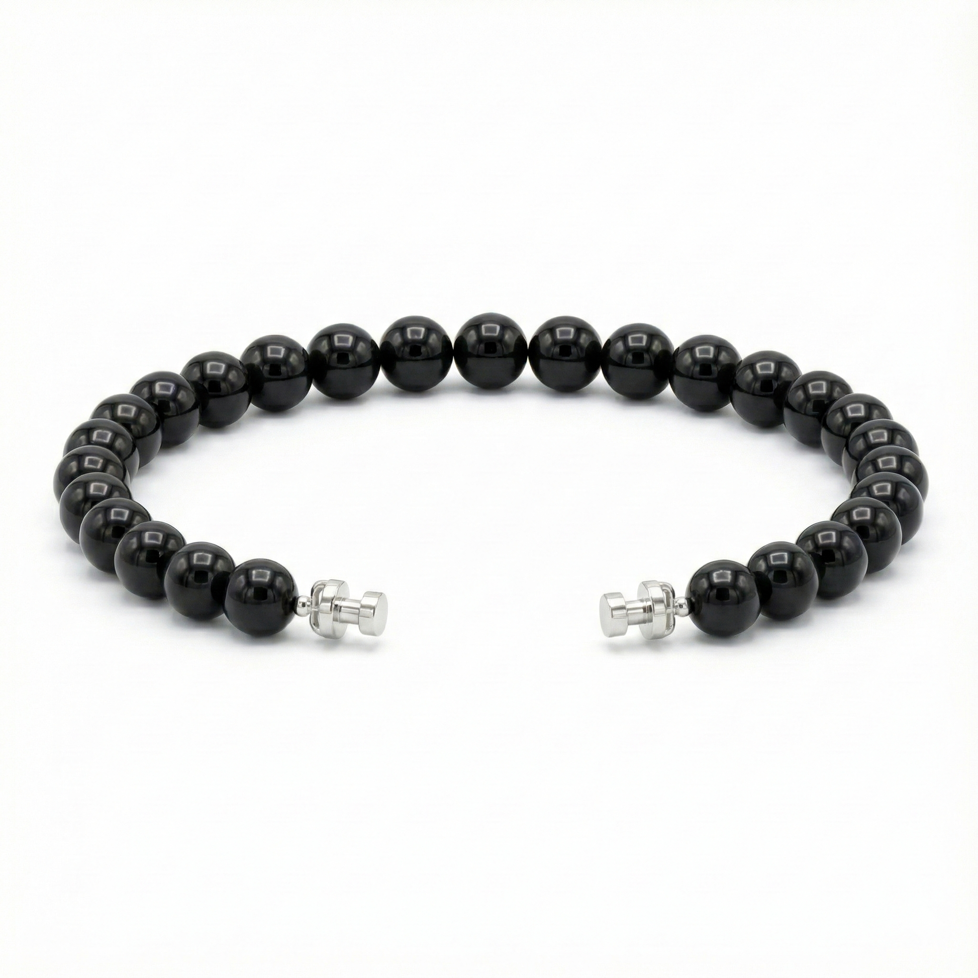The 6mm Round Black Spinel Beaded Bracelet is defined by its deep jet-black brilliance and subtle reflective sparkle. Known for its protective and grounding qualities, black spinel exudes quiet strength and modern sophistication. Elegant in its simplicity yet striking in presence, this bracelet transitions effortlessly from everyday wear to evening refinement.