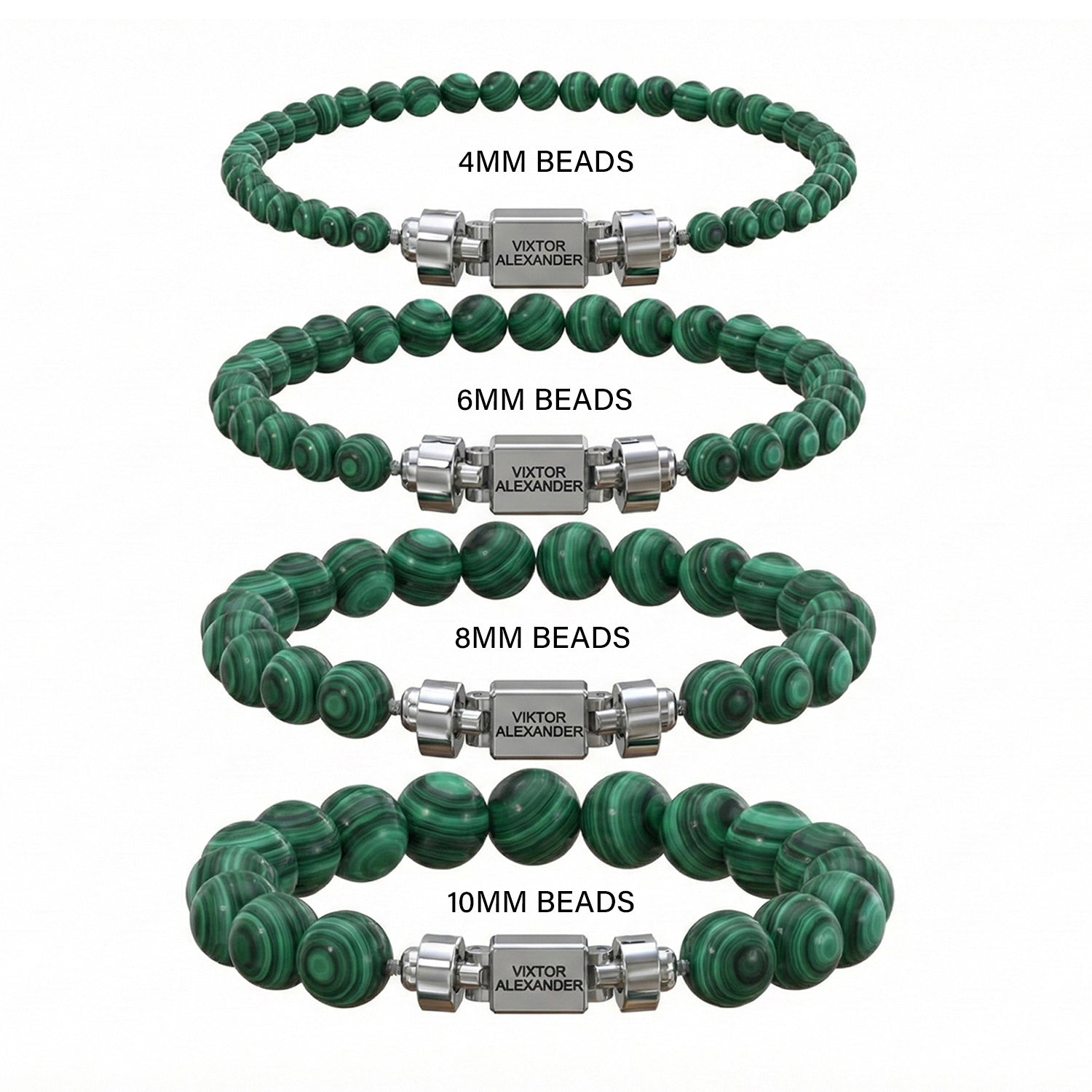 Regalia S 925 Silver with 3 Sizes of Malachite Oroboro Bracelet