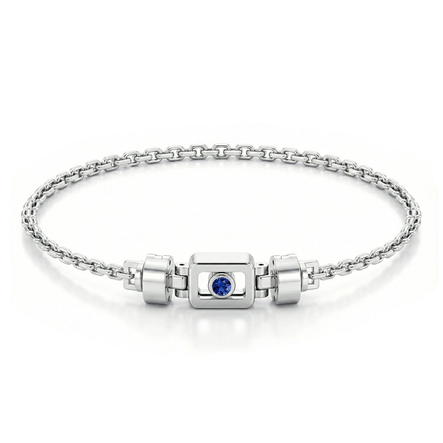 Blue Sapphire 925 Silver with Silver Link XOXO Bracelet