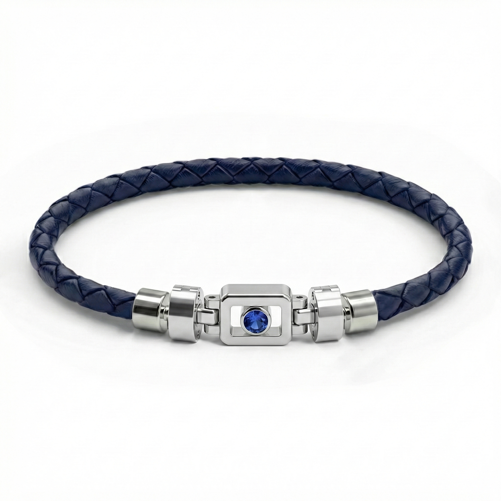 Blue Sapphire 925 Silver with Weaved Calf Leather XOXO Bracelet
