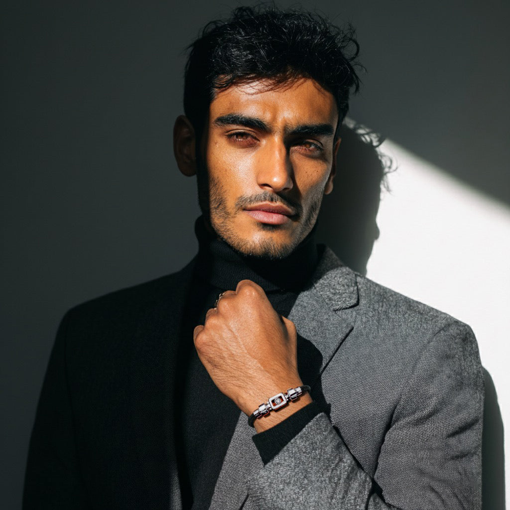 Sleek and sculpted, its refined silhouette flatters every wrist with modern, genderless, and designed for those who believe that love, in all its expressions, is meant to be worn. At its heart, a floating charm moves gently with each motion, catching light like a quiet heartbeat — a subtle reminder of the bonds that shape us.