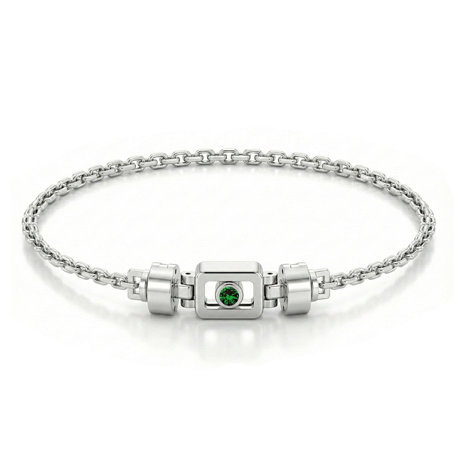 Tsavorite 925 Silver with Silver Link XOXO Bracelet