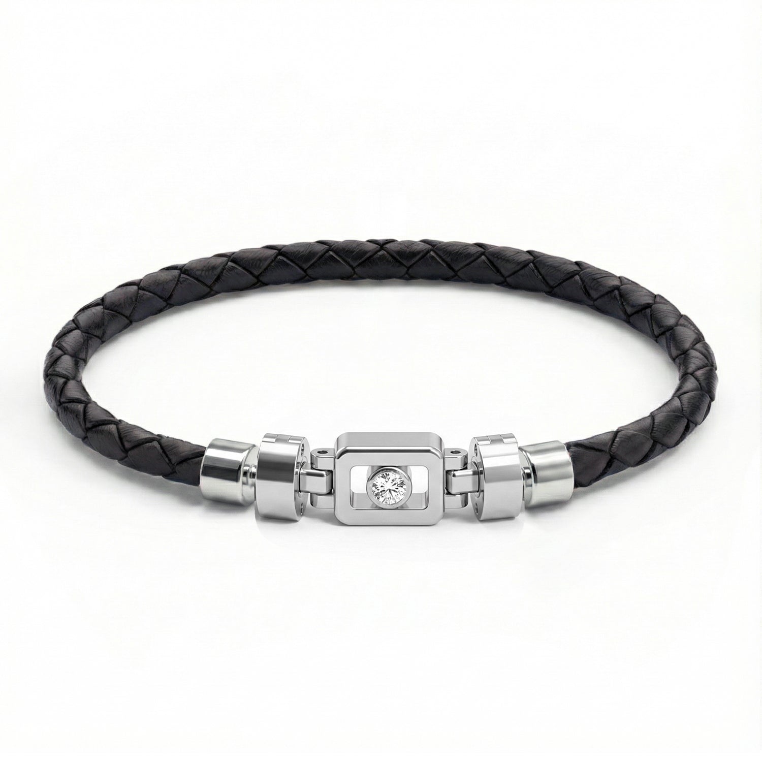 Diamond 925 Silver with Weaved Calf Leather XOXO Bracelet