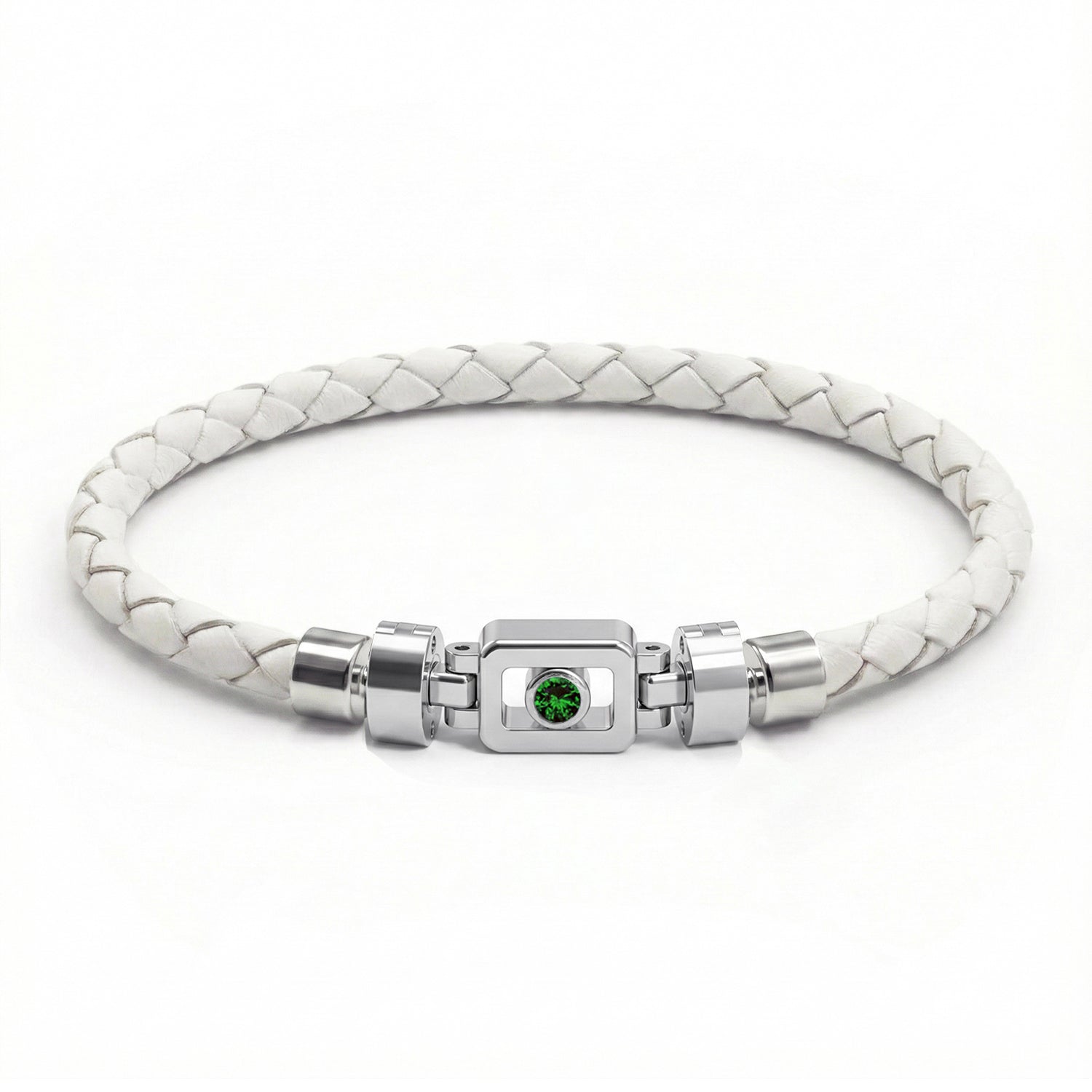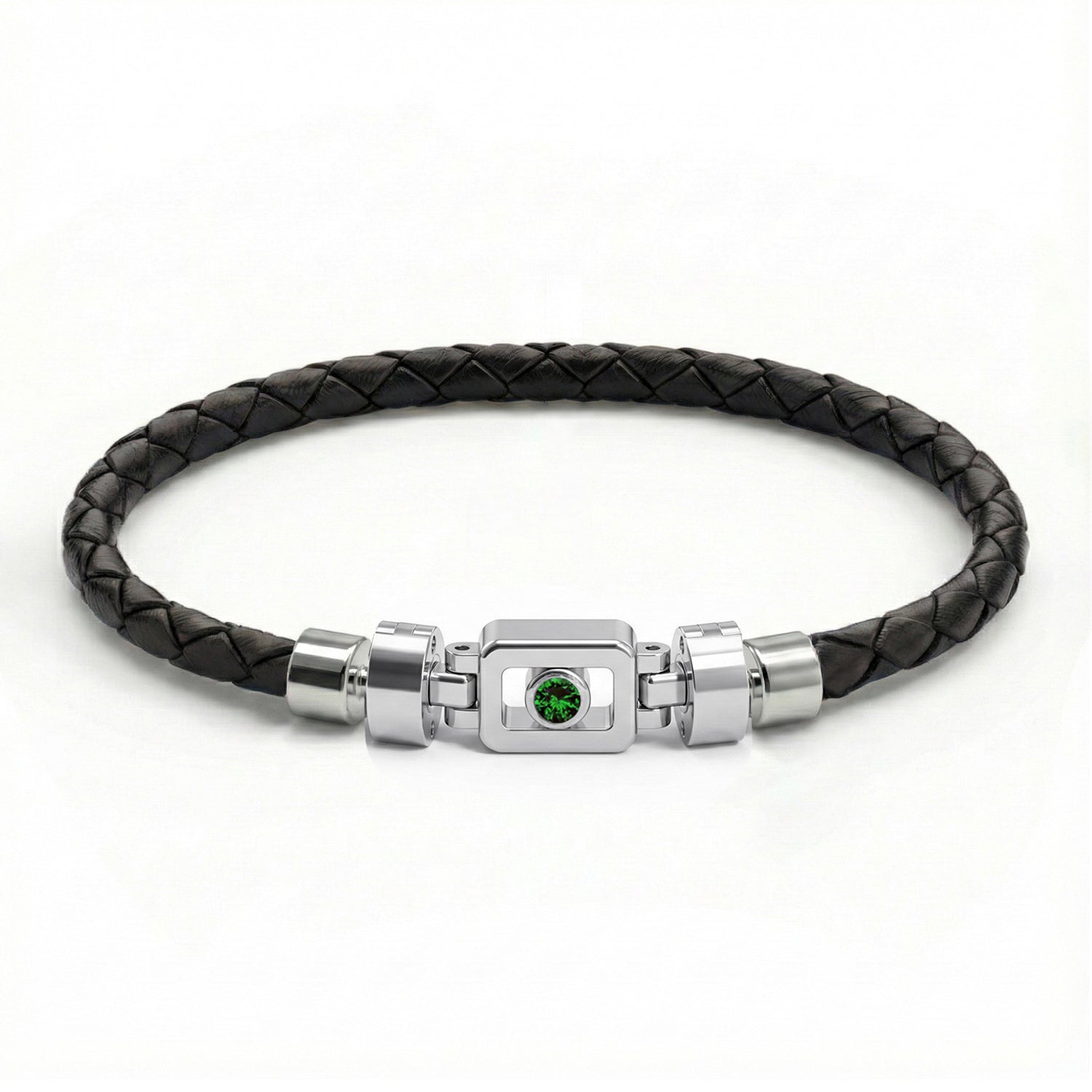 Tsavorite 925 Silver with Weaved Calf Leather XOXO Bracelet