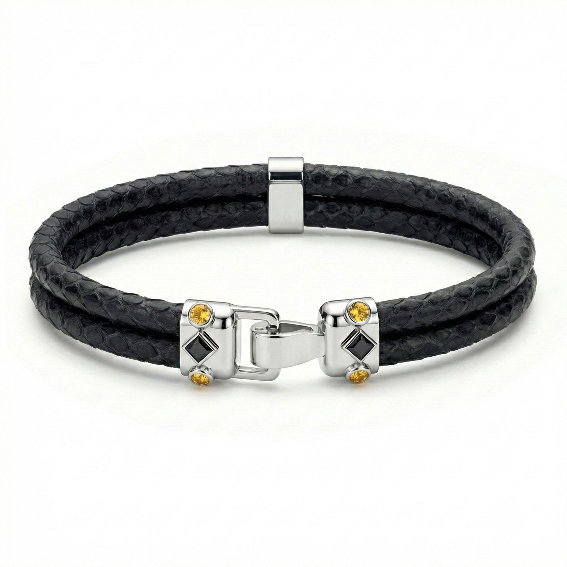 Duma 925 Silver Yellow Sapphire with 4mm Black Python Leather