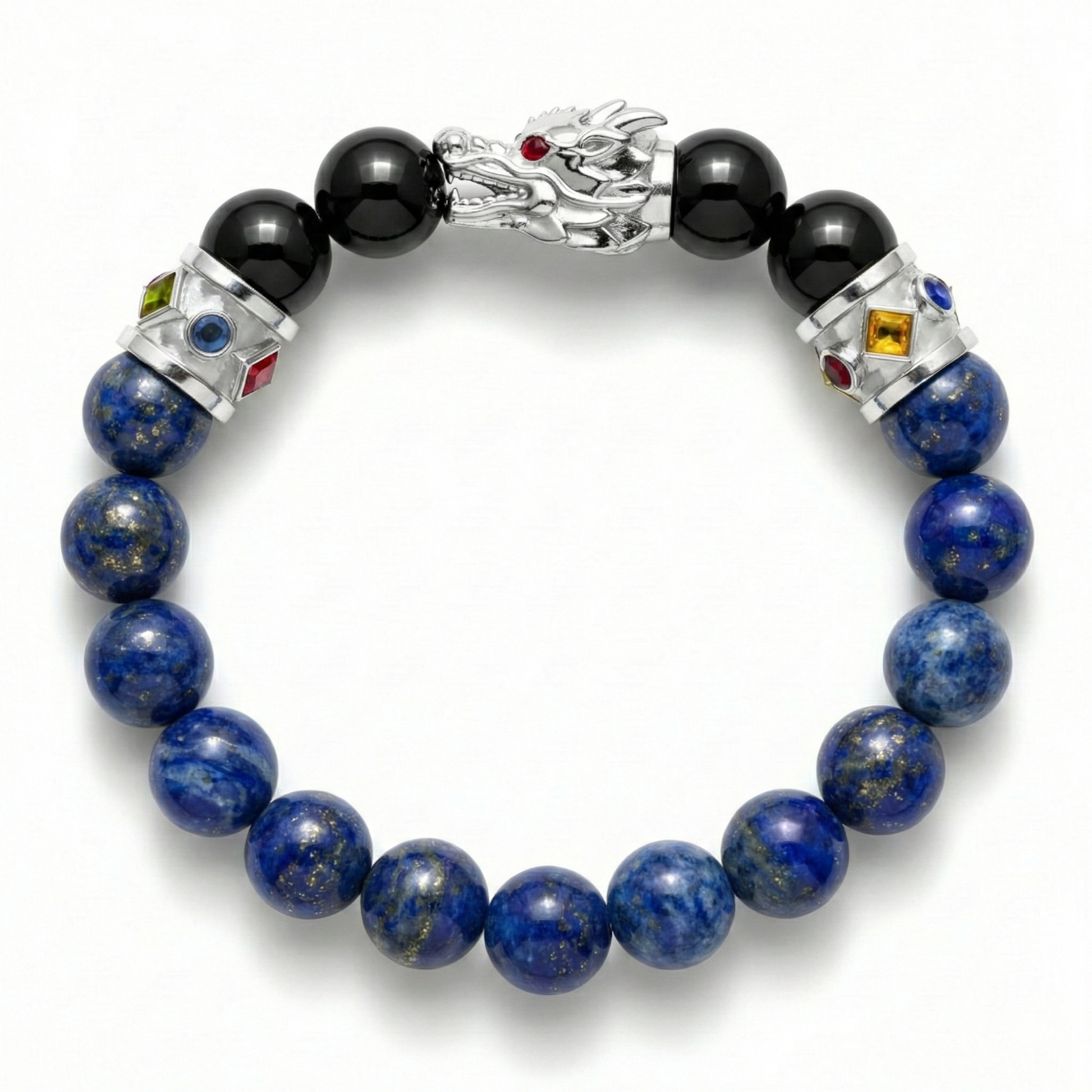 龙形图案,搭配925银间隔珠和彩色蓝宝石